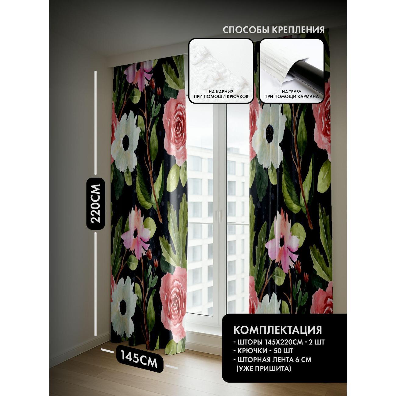 Фотошторы 365home 3D Акварельный цветочный узор: розы