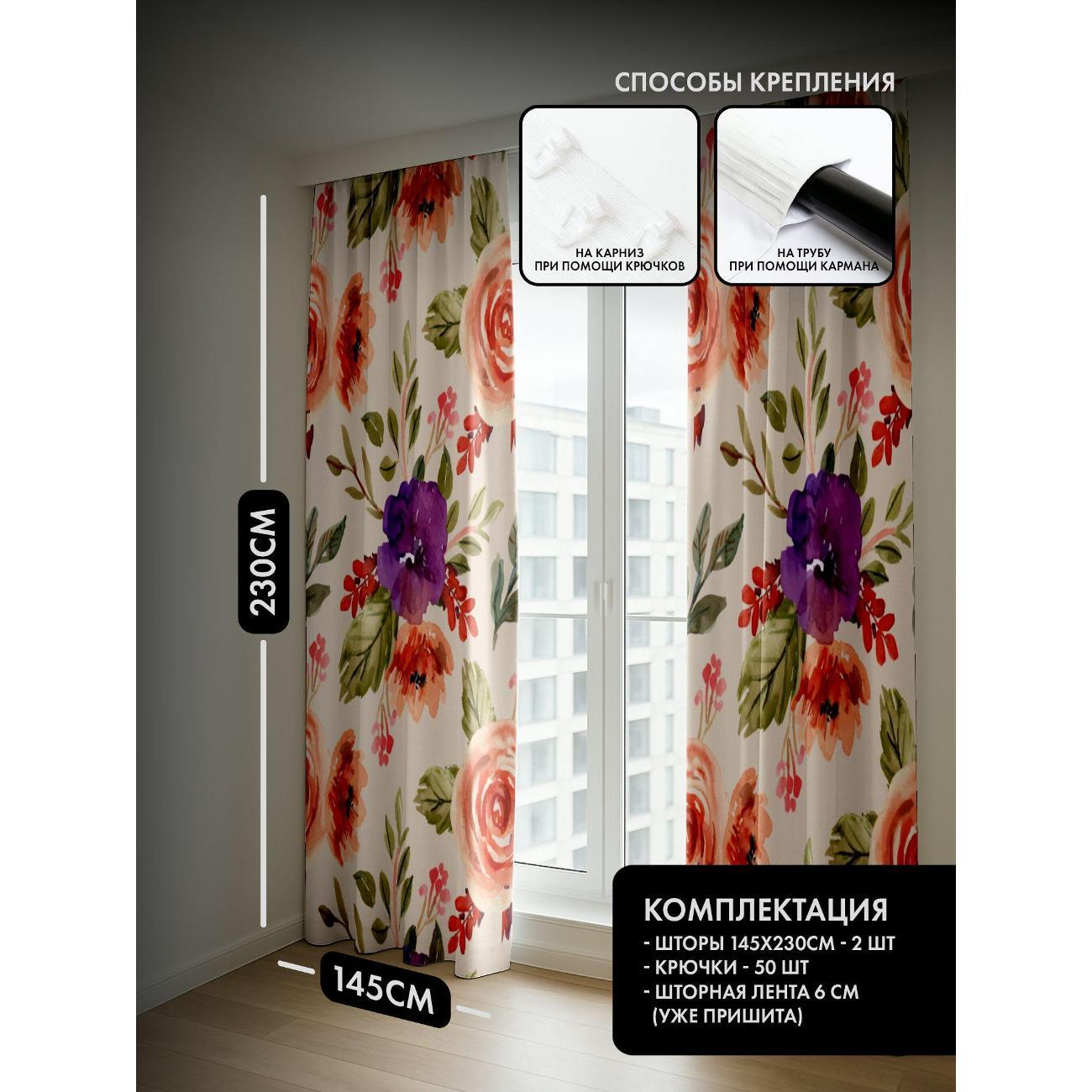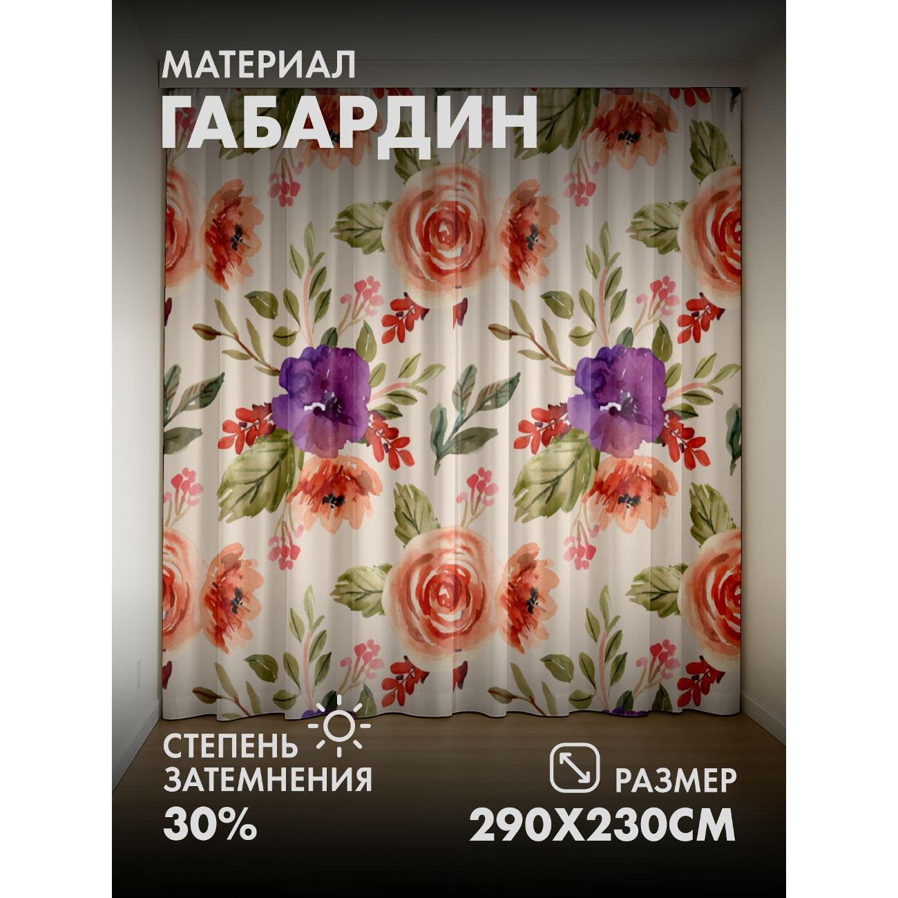 Фотошторы 365home 3D Акварельный цветочный узор: розы