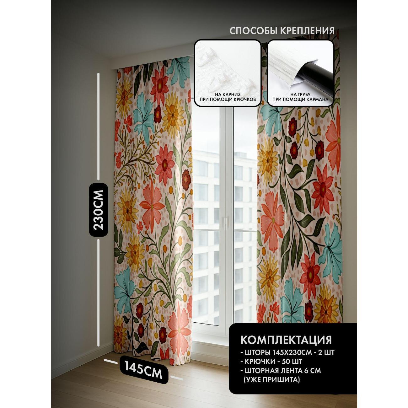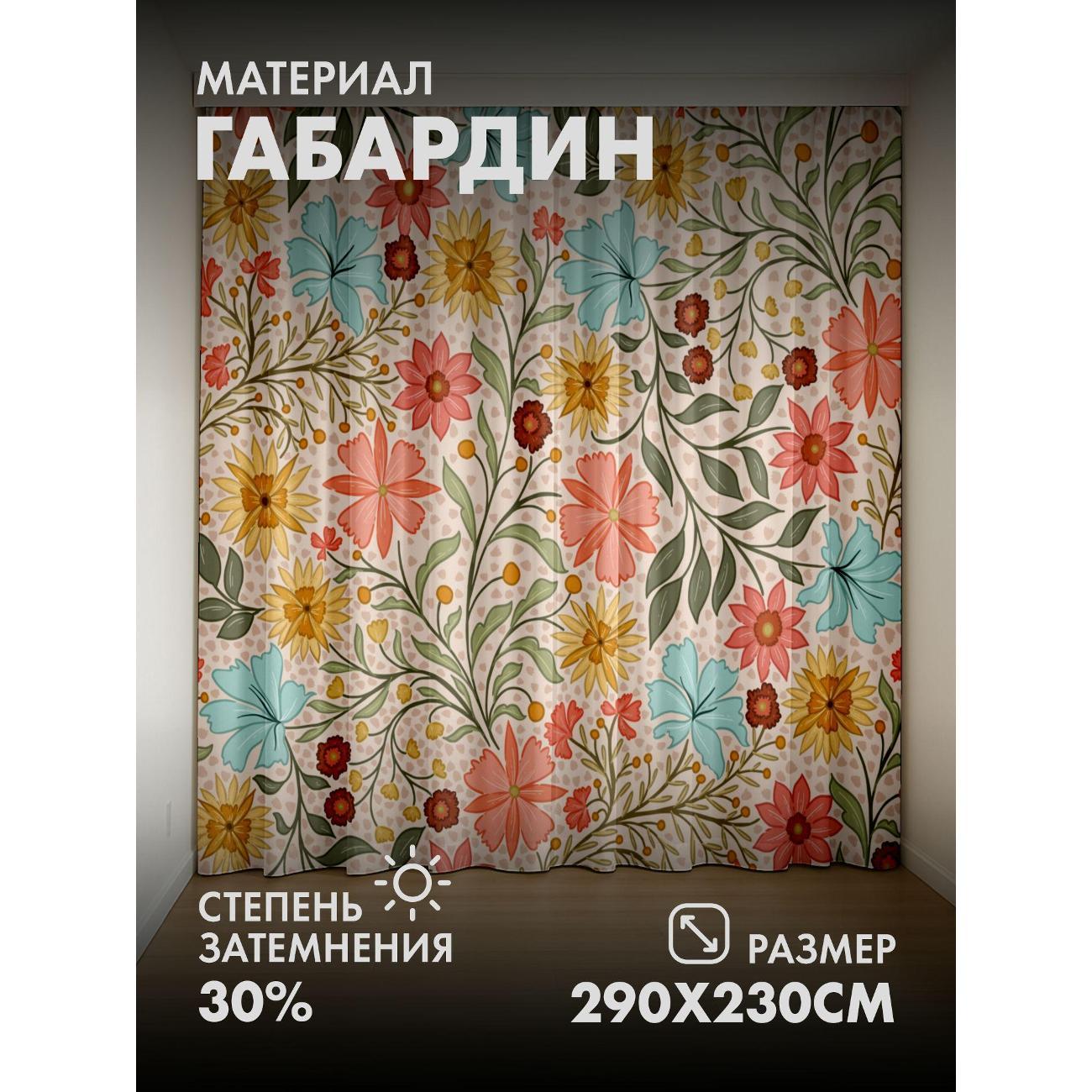Фотошторы 365home 3D Цветочный узор: розовые, желтые