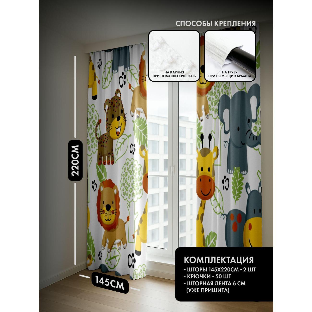 Фотошторы 365home 3D Милые мультяшные лев, жираф, слон
