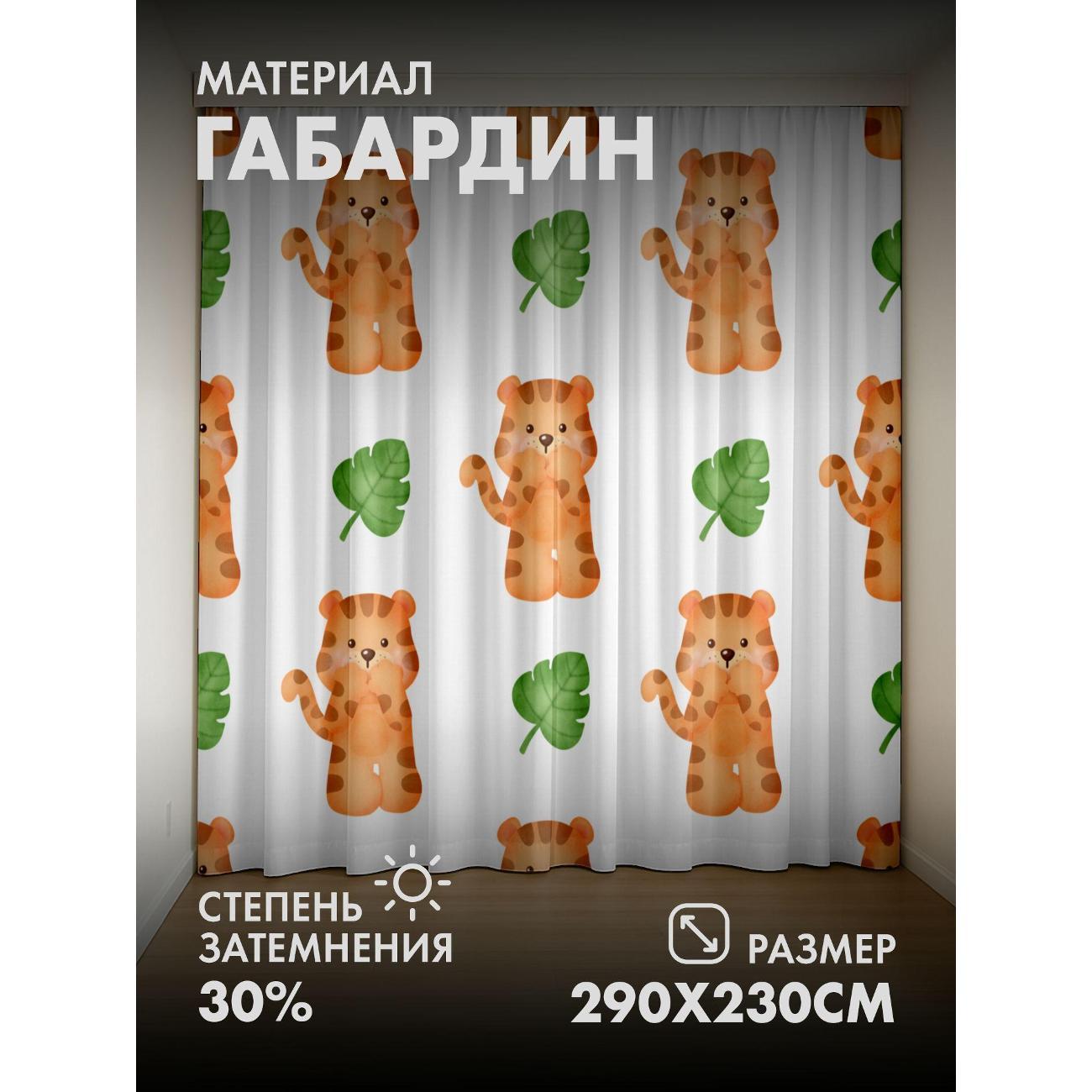 Фотошторы 365home 3D Милые тигрята и зеленые листья