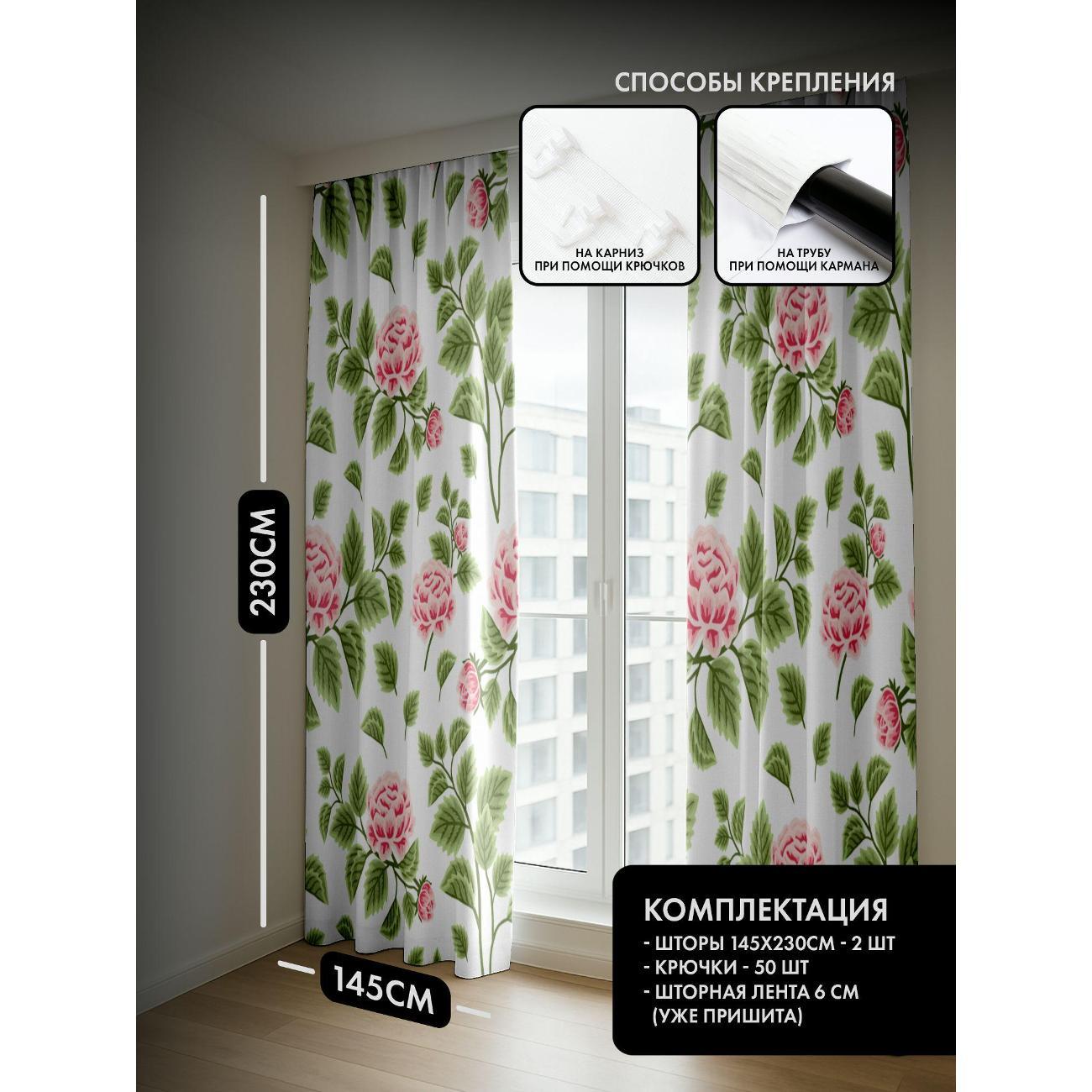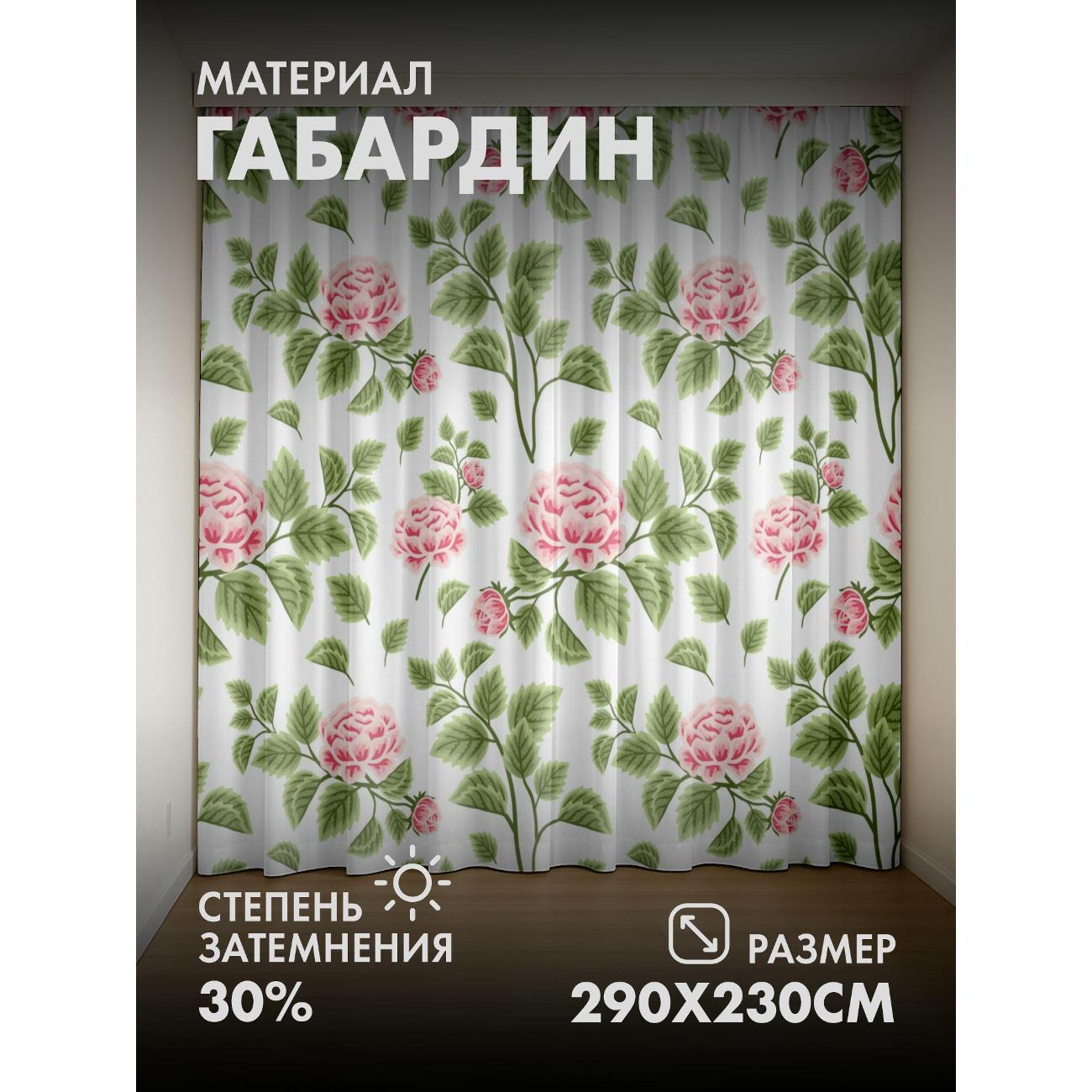 Фотошторы 365home 3D Розовые розы с зелеными листьями