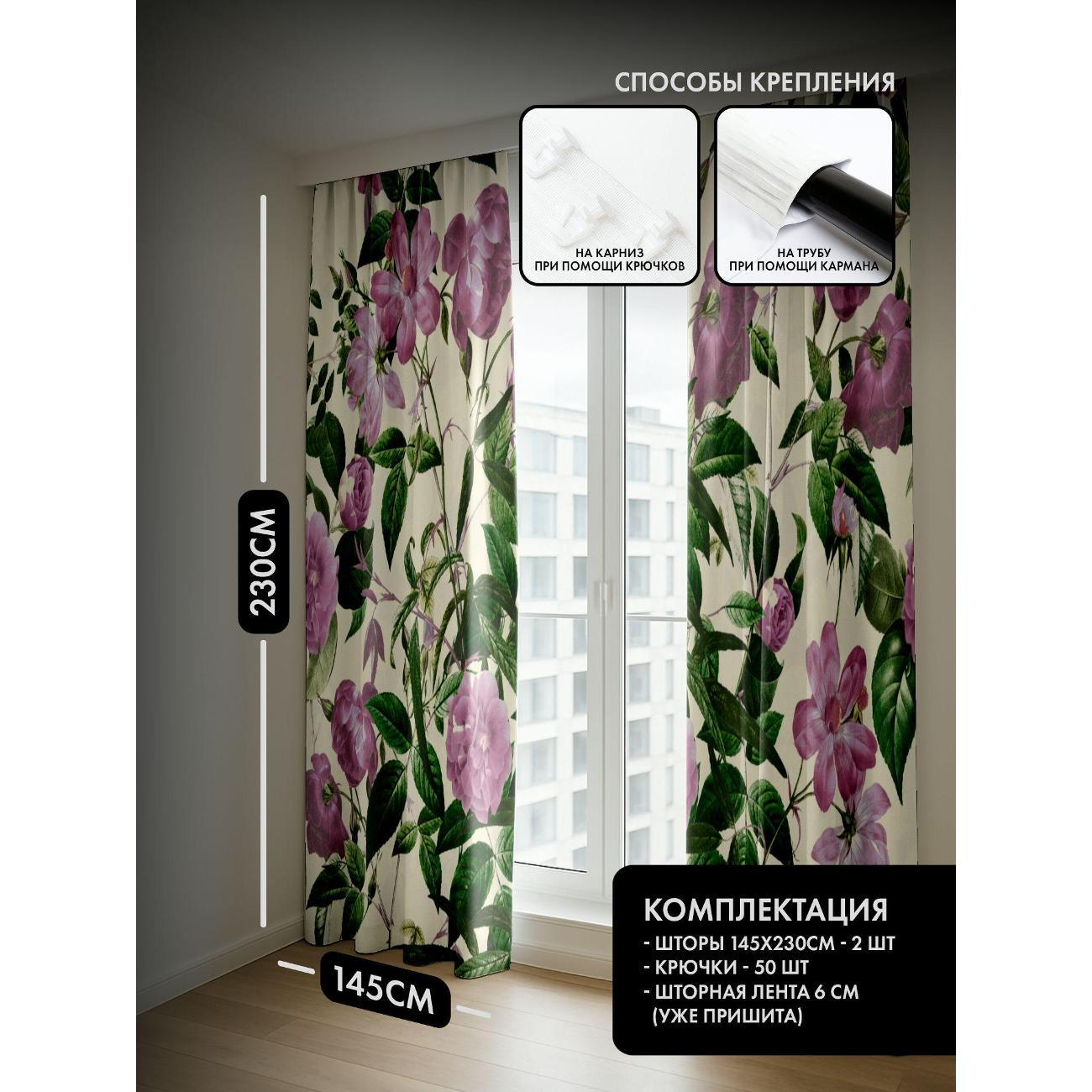Фотошторы 365home 3D Розовые розы с зелеными листьями