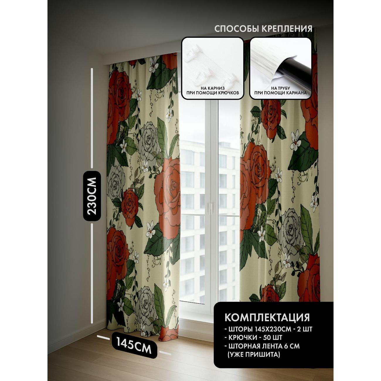 Фотошторы 365home 3D Розы (красные, серые) с зелеными