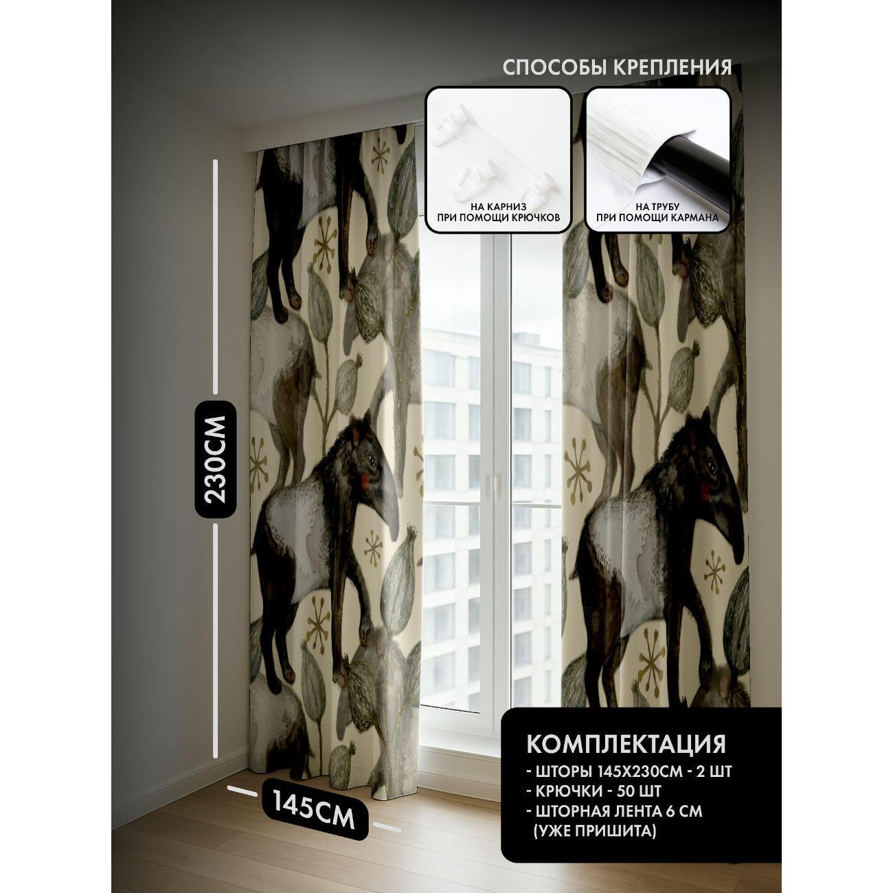 Фотошторы 365home 3D Тапиры, растительные бутоны, узор