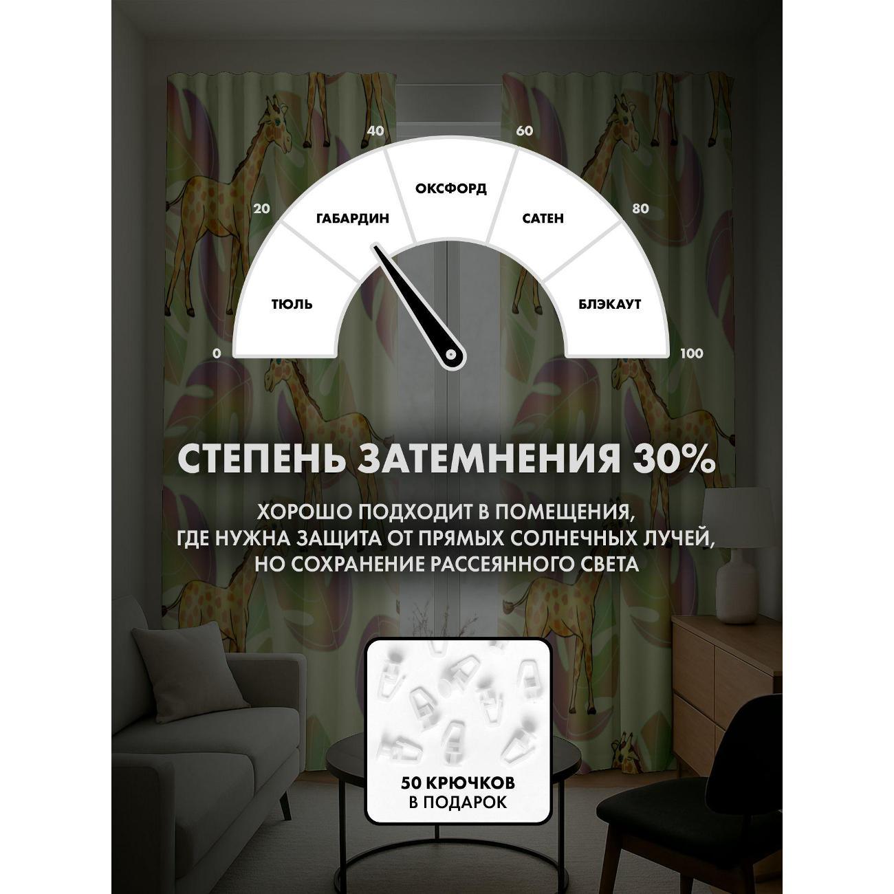 Комплект фотоштор 3D от бренда 365home с дизайном - Жирафы на фоне крупных разноцветных листьев монстеры. Оригинальное решение, позволяющее обновить ваш дом, придать ему неповторимый стиль, красоту и подарить его обитателям комфорт и уют, а также стать надёжной защитой от городского шума и холода зимой.