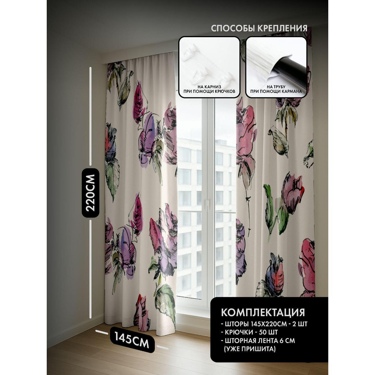 Фотошторы 365home Акварельные розы с зелёными (FP26511353)