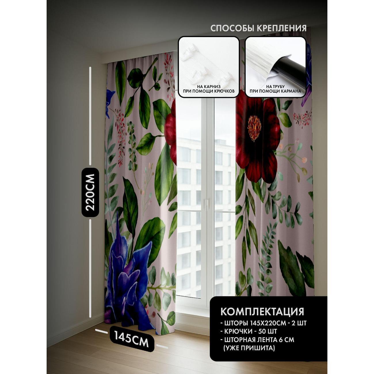 Комплект фотоштор 3D от бренда 365home с дизайном - Акварельный узор: красные и синие цветы с зелёной листвой. Оригинальное решение, позволяющее обновить ваш дом, придать ему неповторимый стиль, красоту и подарить его обитателям комфорт и уют, а также стать надёжной защитой от городского шума и холода зимой.