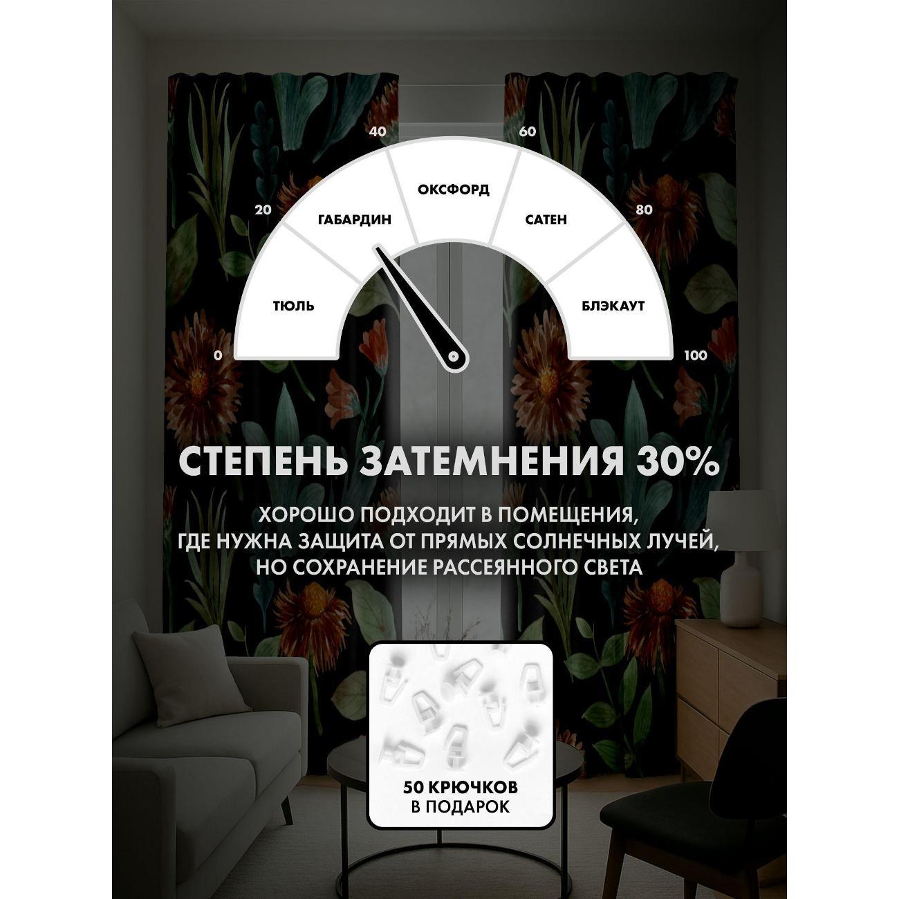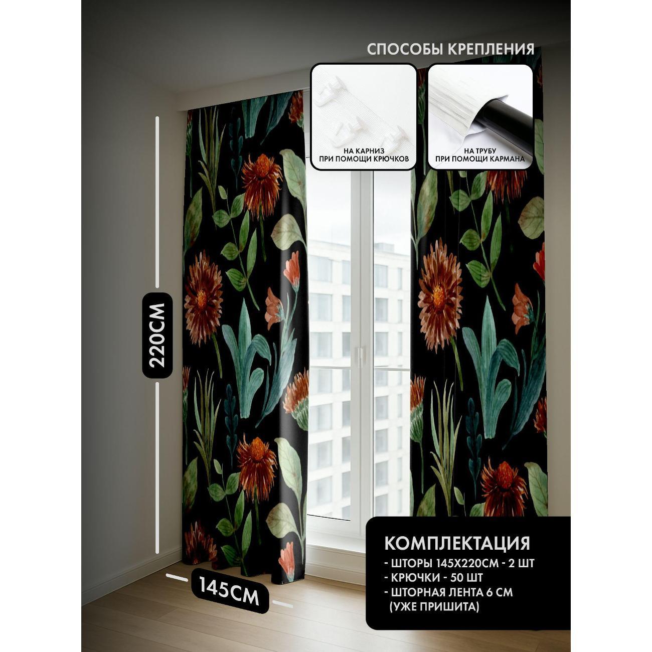 Комплект фотоштор 3D от бренда 365home с дизайном - Акварельный узор: оранжевые цветы и зелёные листья на чёрном фоне. Оригинальное решение, позволяющее обновить ваш дом, придать ему неповторимый стиль, красоту и подарить его обитателям комфорт и уют, а также стать надёжной защитой от городского шума и холода зимой.