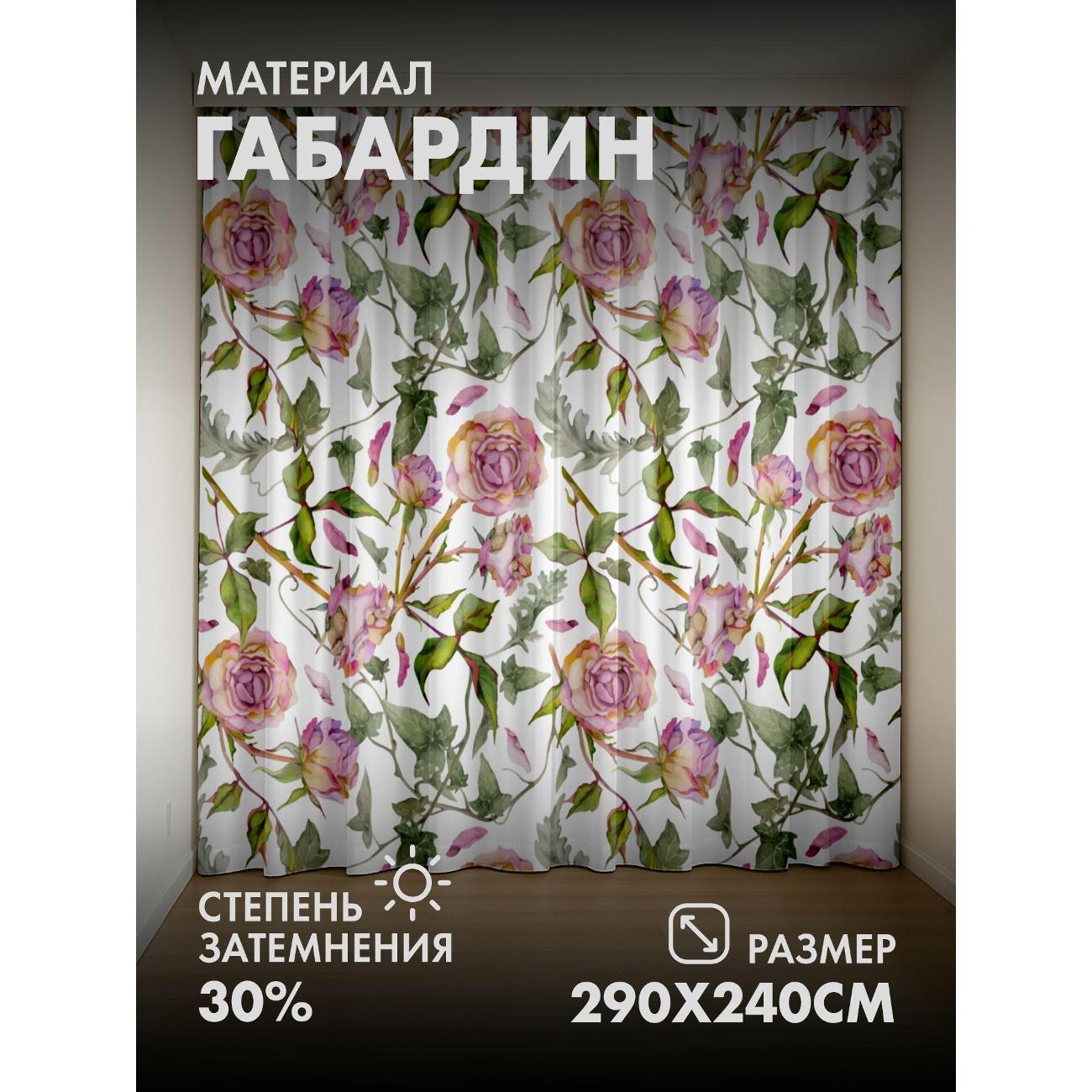 Комплект фотоштор 3D от бренда 365home с дизайном - Акварельный узор: розы и зелёные листья на белом фоне. Оригинальное решение, позволяющее обновить ваш дом, придать ему неповторимый стиль, красоту и подарить его обитателям комфорт и уют, а также стать надёжной защитой от городского шума и холода зимой.