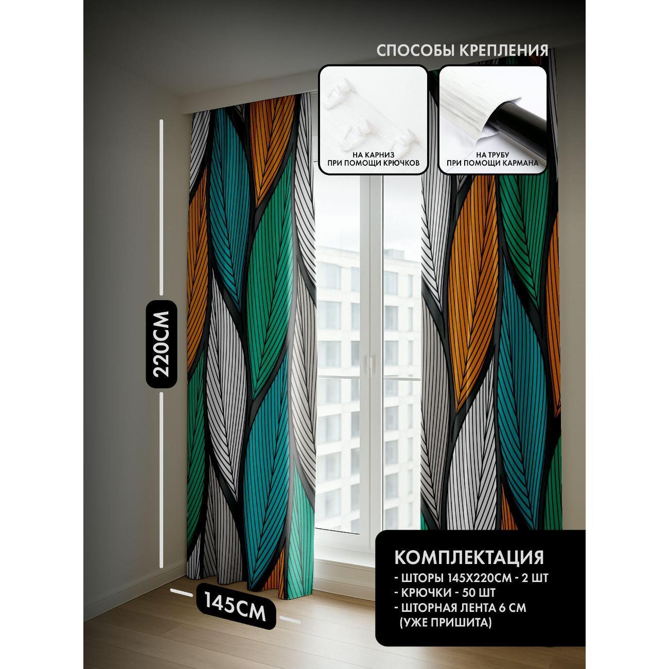 Комплект фотоштор 3D от бренда 365home с дизайном - Бесшовный узор из разноцветных стилизованных листьев. Оригинальное решение, позволяющее обновить ваш дом, придать ему неповторимый стиль, красоту и подарить его обитателям комфорт и уют, а также стать надёжной защитой от городского шума и холода зимой.