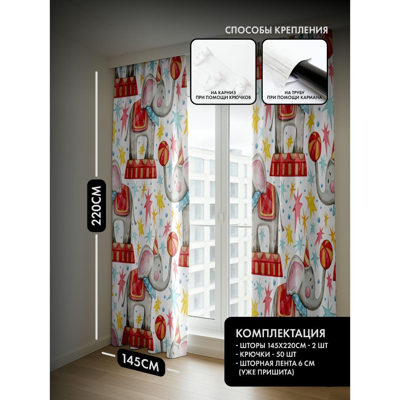 Фотошторы 365home Цирковые слоны в шапках жонглируют (FP412133679)