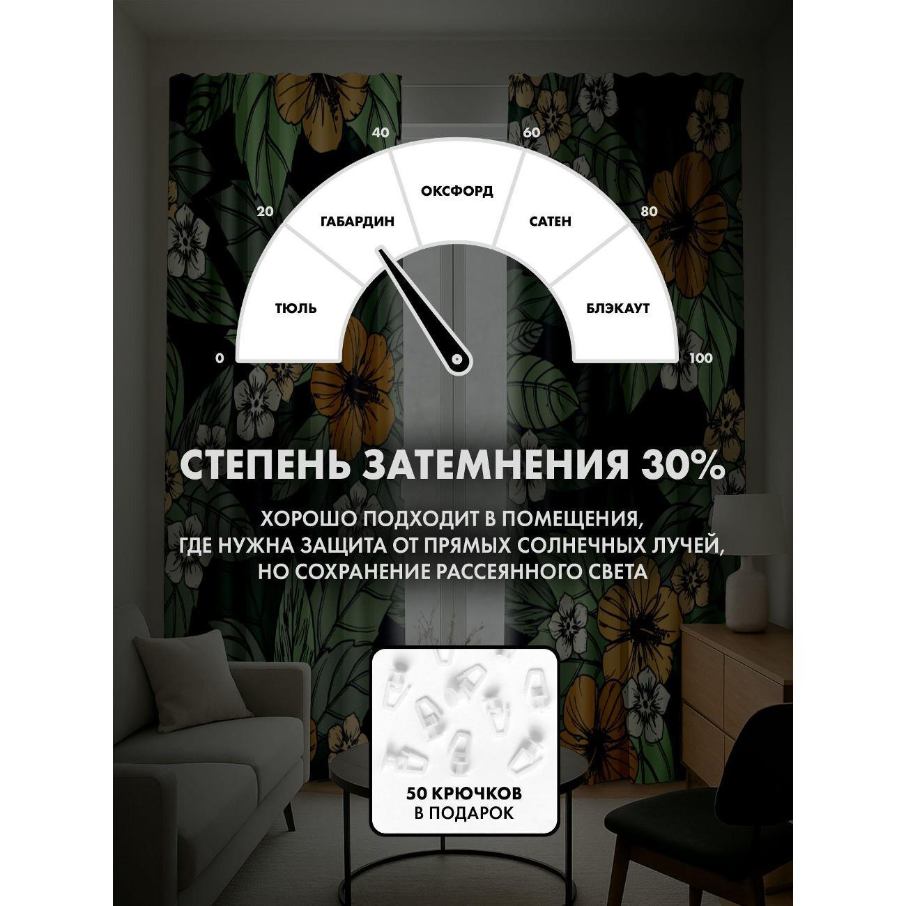 Степень затемнения - 30%. Два способа крепления - на карниз с помощью крючков и на трубу при помощи кармана. Высота 220 см, ширина одного полотна - 145 см. В комплекте 2 полотна. Тон изображения может незначительно отличаться от представленной на сайте фотографии. Тыльная сторона портьеры не имеет изображения.