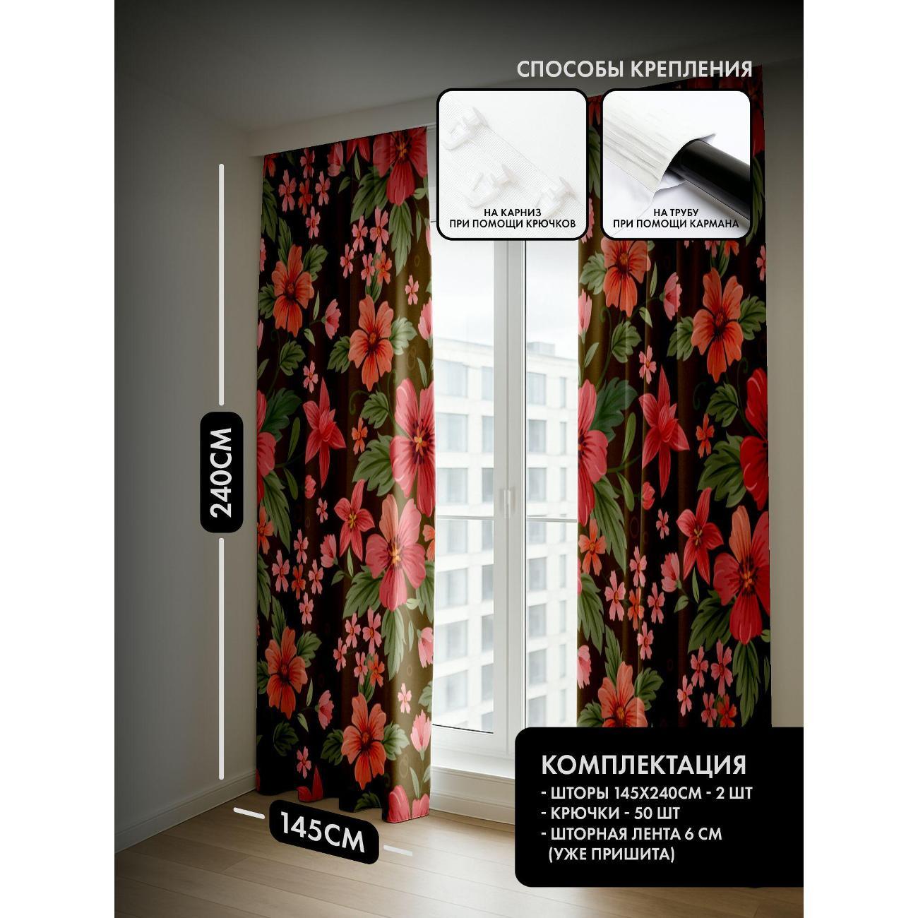 Комплект фотоштор 3D от бренда 365home с дизайном - Цветочные мотивы: розовые и оранжевые цветы с листьями на коричневом фоне. Оригинальное решение, позволяющее обновить ваш дом, придать ему неповторимый стиль, красоту и подарить его обитателям комфорт и уют, а также стать надёжной защитой от городского шума и холода зимой.