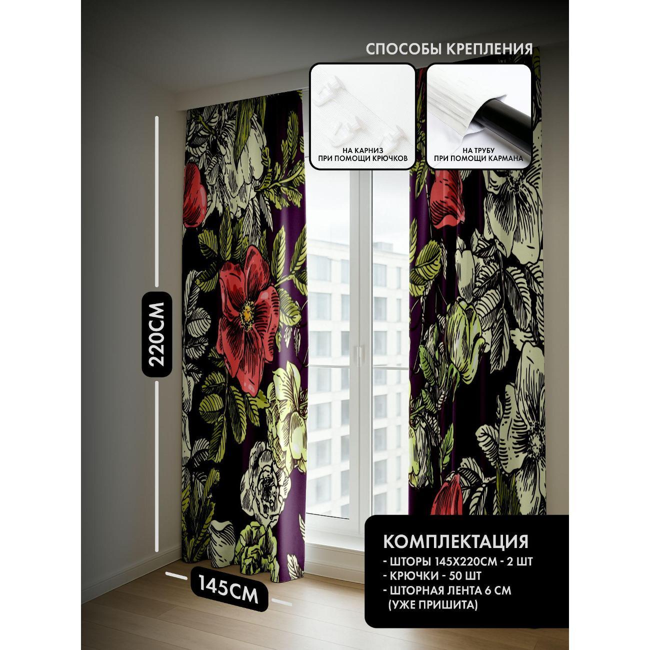 Комплект фотоштор 3D от бренда 365home с дизайном - Цветочные мотивы: розы и листья на фиолетовом фоне. Оригинальное решение, позволяющее обновить ваш дом, придать ему неповторимый стиль, красоту и подарить его обитателям комфорт и уют, а также стать надёжной защитой от городского шума и холода зимой.