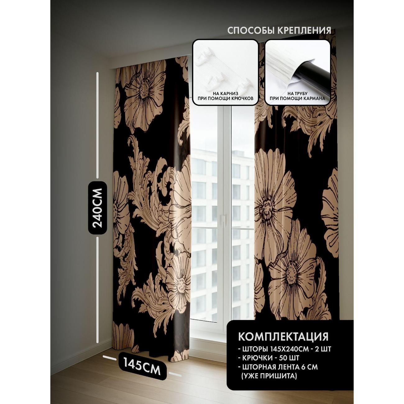 Комплект фотоштор 3D от бренда 365home с дизайном - Цветочные мотивы с завитками на тёмном фоне. Оригинальное решение, позволяющее обновить ваш дом, придать ему неповторимый стиль, красоту и подарить его обитателям комфорт и уют, а также стать надёжной защитой от городского шума и холода зимой.