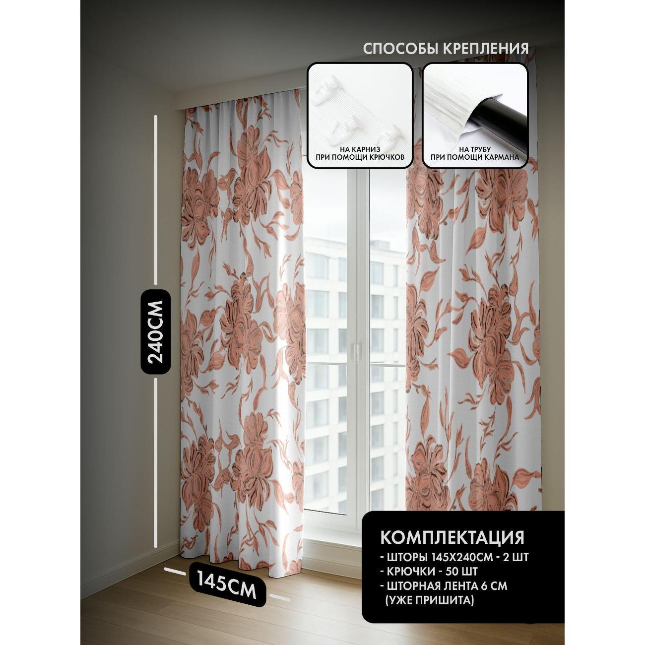 Комплект фотоштор 3D от бренда 365home с дизайном - Цветочные мотивы в нежно-розовых тонах на белом фоне. Оригинальное решение, позволяющее обновить ваш дом, придать ему неповторимый стиль, красоту и подарить его обитателям комфорт и уют, а также стать надёжной защитой от городского шума и холода зимой.