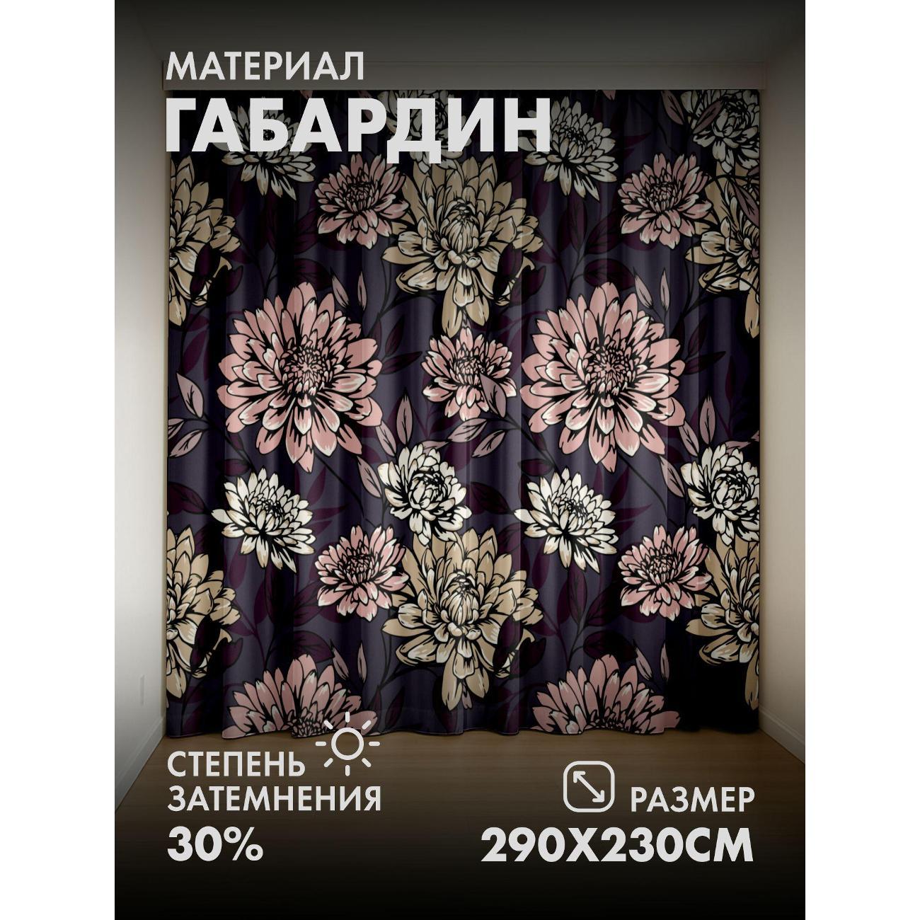 Комплект фотоштор 3D от бренда 365home с дизайном - Цветочные узоры: розовые, бежевые и белые цветы на тёмно-фиолетовом фоне. Оригинальное решение, позволяющее обновить ваш дом, придать ему неповторимый стиль, красоту и подарить его обитателям комфорт и уют, а также стать надёжной защитой от городского шума и холода зимой.