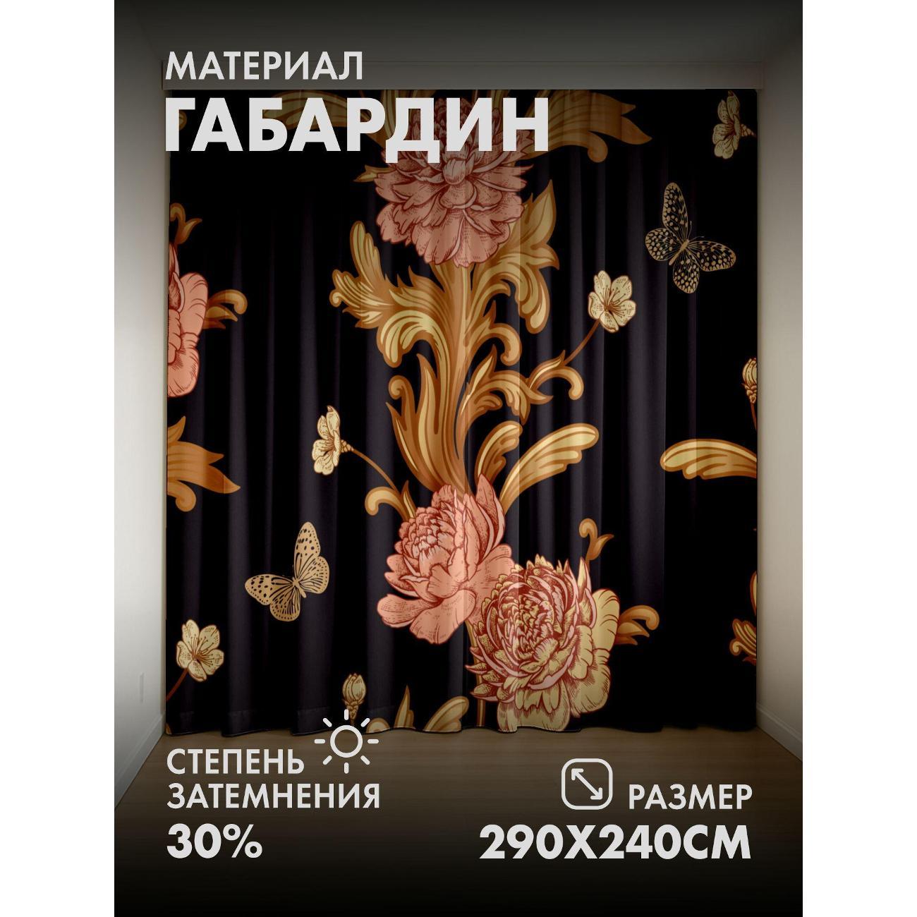 Комплект фотоштор 3D от бренда 365home с дизайном - Цветочные узоры с пионами, листьями и бабочками на чёрном фоне. Оригинальное решение, позволяющее обновить ваш дом, придать ему неповторимый стиль, красоту и подарить его обитателям комфорт и уют, а также стать надёжной защитой от городского шума и холода зимой.