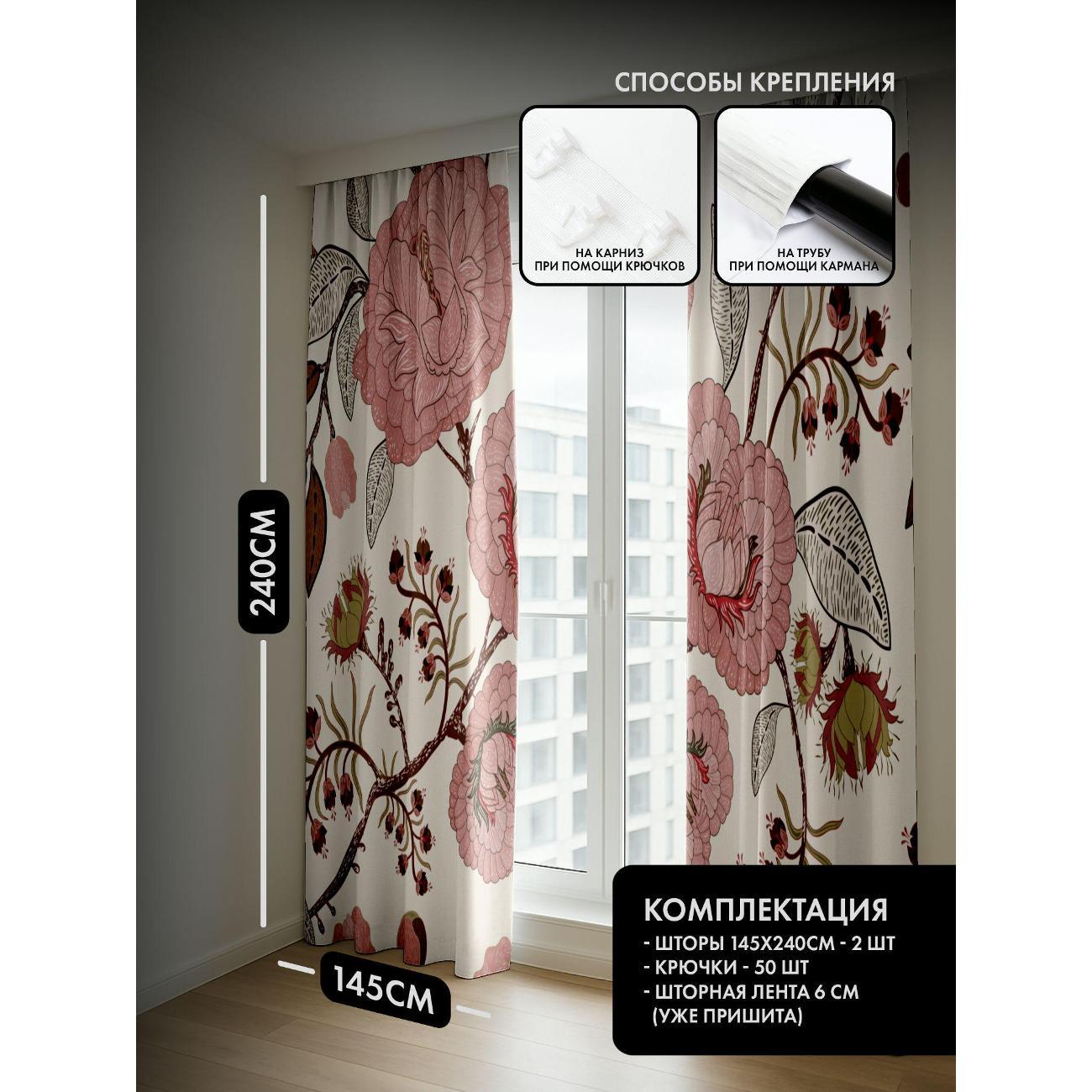Комплект фотоштор 3D от бренда 365home с дизайном - Цветочные ветви с розовыми пионами и листьями. Оригинальное решение, позволяющее обновить ваш дом, придать ему неповторимый стиль, красоту и подарить его обитателям комфорт и уют, а также стать надёжной защитой от городского шума и холода зимой.