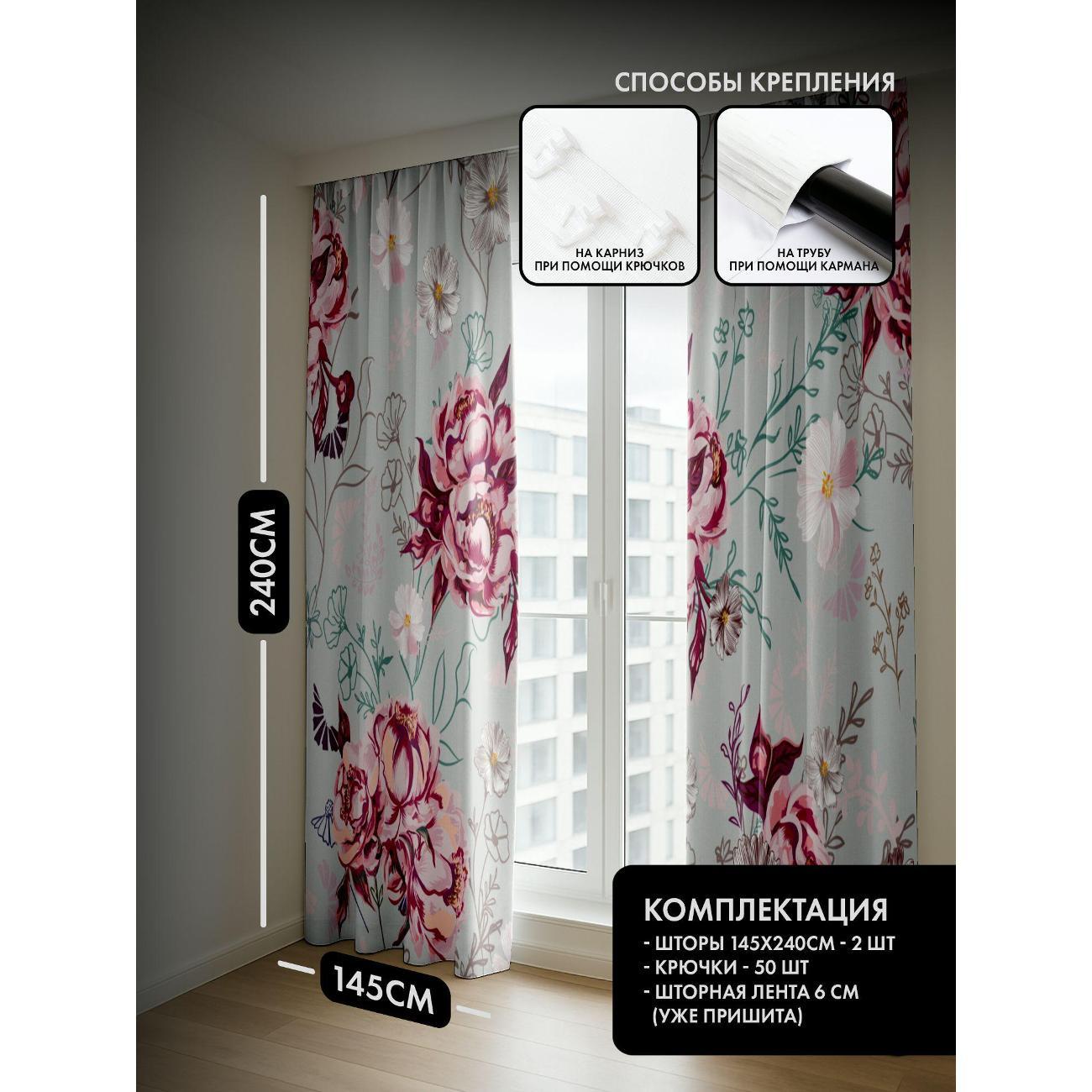 Комплект фотоштор 3D от бренда 365home с дизайном - Цветочный узор: пионы, мелкие цветы, пастельный фон. Оригинальное решение, позволяющее обновить ваш дом, придать ему неповторимый стиль, красоту и подарить его обитателям комфорт и уют, а также стать надёжной защитой от городского шума и холода зимой.