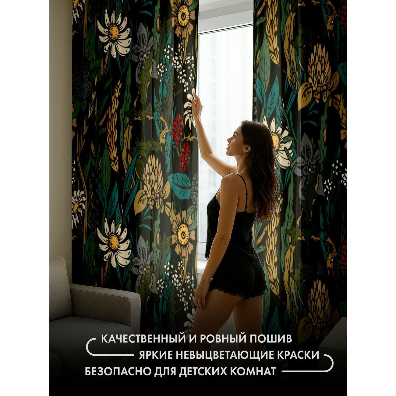 Комплект фотоштор 3D от бренда 365home с дизайном - Цветочный узор: ромашки, колосья, листья на тёмном фоне. Оригинальное решение, позволяющее обновить ваш дом, придать ему неповторимый стиль, красоту и подарить его обитателям комфорт и уют, а также стать надёжной защитой от городского шума и холода зимой.