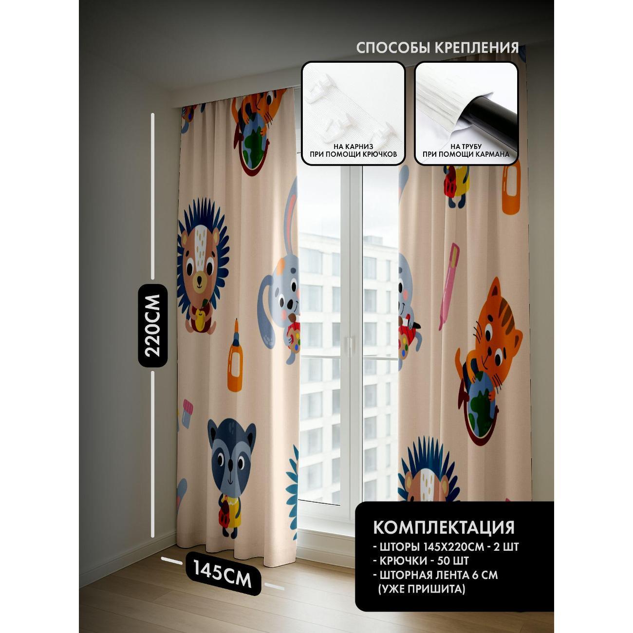 Комплект фотоштор 3D от бренда 365home с дизайном - Милые зверята с предметами: глобус, краски, рюкзак. Оригинальное решение, позволяющее обновить ваш дом, придать ему неповторимый стиль, красоту и подарить его обитателям комфорт и уют, а также стать надёжной защитой от городского шума и холода зимой.