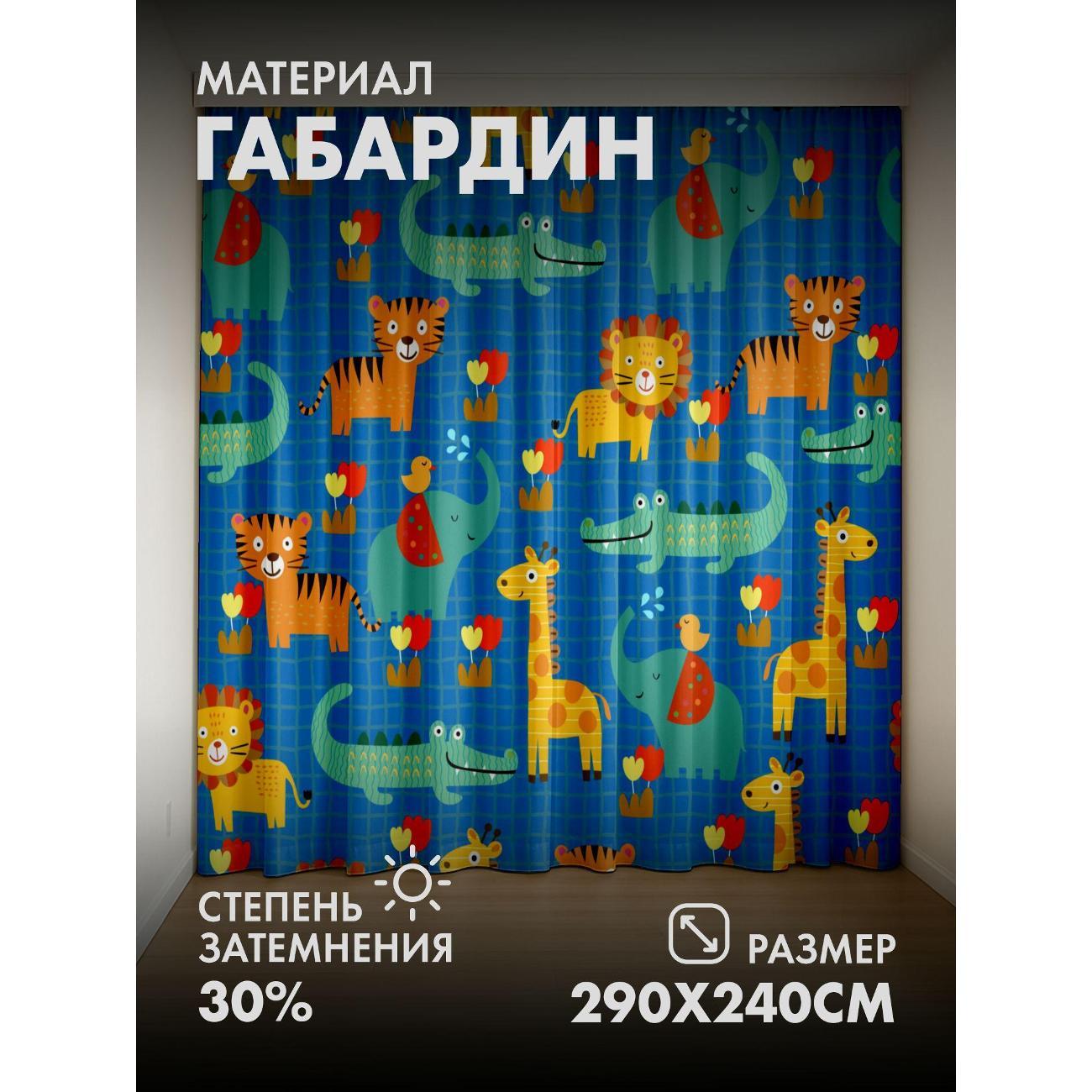 Комплект фотоштор 3D от бренда 365home с дизайном - Мультяшные лев, тигр, жираф, слон, крокодил на синем фоне. Оригинальное решение, позволяющее обновить ваш дом, придать ему неповторимый стиль, красоту и подарить его обитателям комфорт и уют, а также стать надёжной защитой от городского шума и холода зимой.