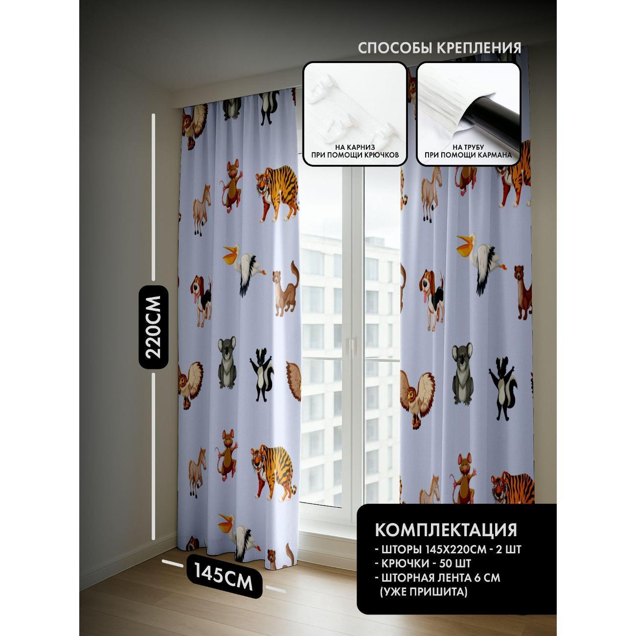 Комплект фотоштор 3D от бренда 365home с дизайном - Мультяшные животные: коала, тигр, собака, пеликан, мышь, сова, скунс, лошадь, выдра.. Оригинальное решение, позволяющее обновить ваш дом, придать ему неповторимый стиль, красоту и подарить его обитателям комфорт и уют, а также стать надёжной защитой от городского шума и холода зимой.