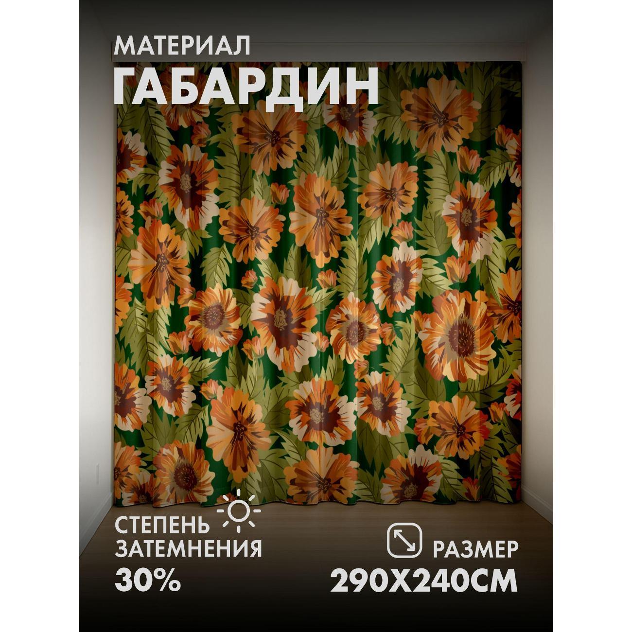 Комплект фотоштор 3D от бренда 365home с дизайном - Оранжевые цветы с зелёными листьями на тёмно-зелёном фоне. Оригинальное решение, позволяющее обновить ваш дом, придать ему неповторимый стиль, красоту и подарить его обитателям комфорт и уют, а также стать надёжной защитой от городского шума и холода зимой.