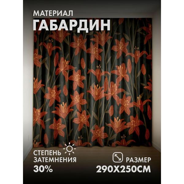 Комплект фотоштор 3D от бренда 365home с дизайном - Оранжевые лилии с бутонами на тёмном фоне. Оригинальное решение, позволяющее обновить ваш дом, придать ему неповторимый стиль, красоту и подарить его обитателям комфорт и уют, а также стать надёжной защитой от городского шума и холода зимой.
