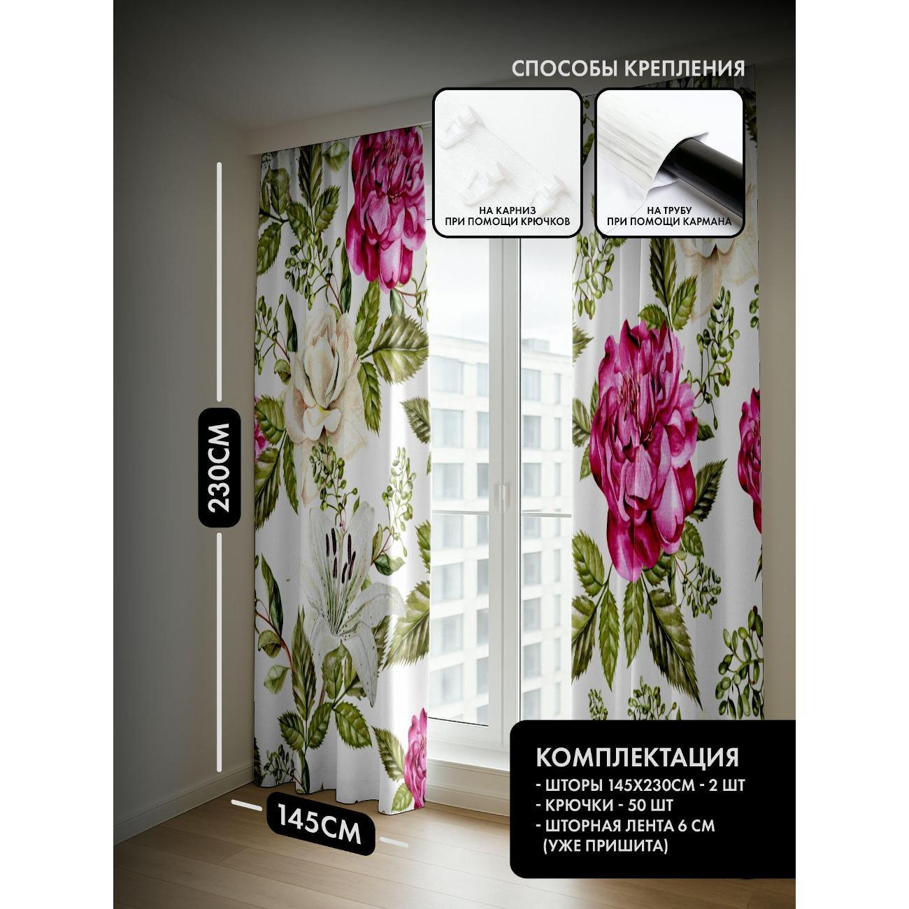 Комплект фотоштор 3D от бренда 365home с дизайном - Розовые пионы, белые розы и лилии с зелёной листвой. Оригинальное решение, позволяющее обновить ваш дом, придать ему неповторимый стиль, красоту и подарить его обитателям комфорт и уют, а также стать надёжной защитой от городского шума и холода зимой.