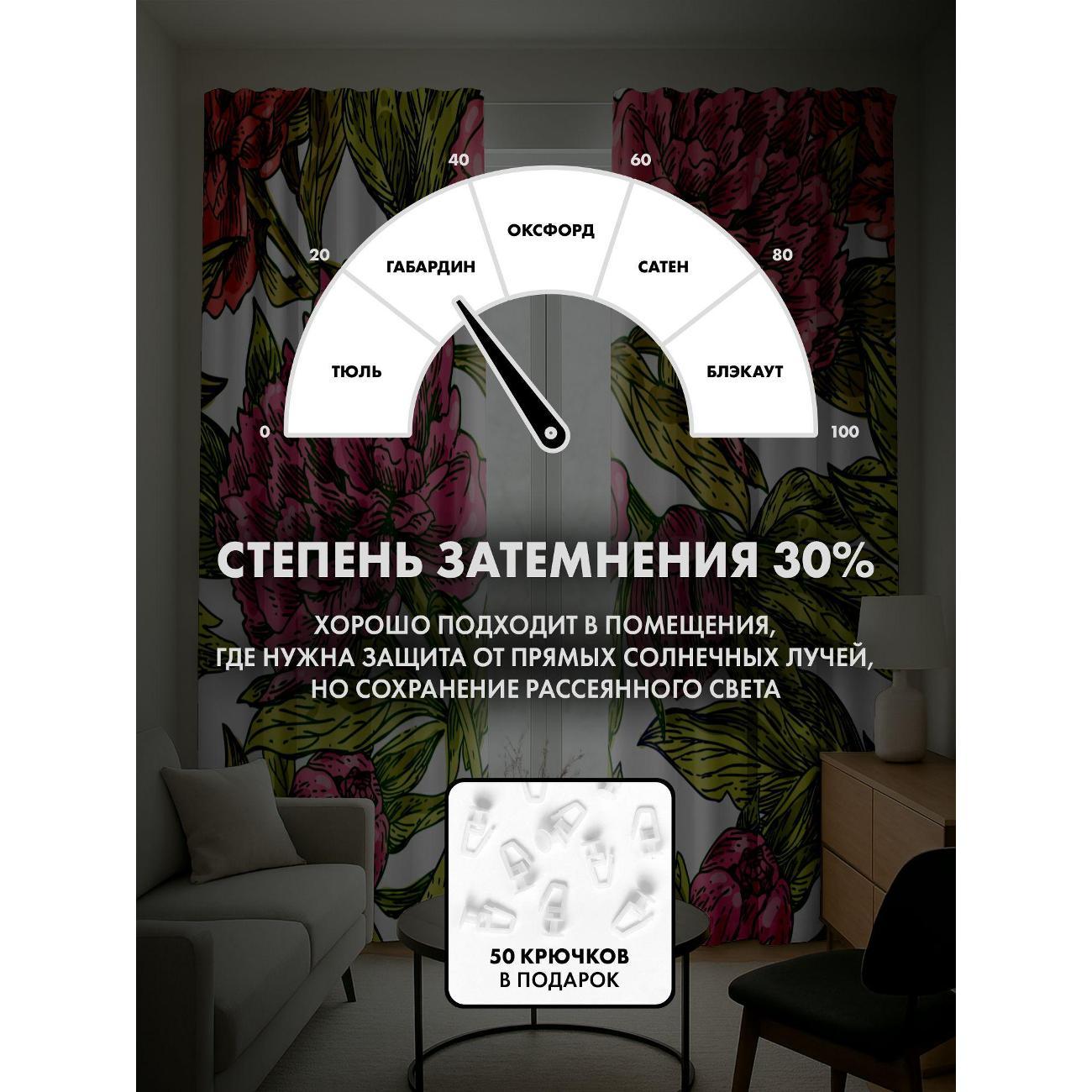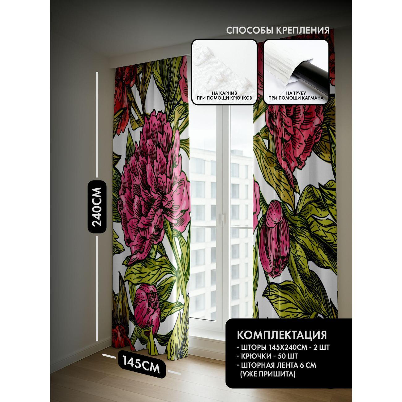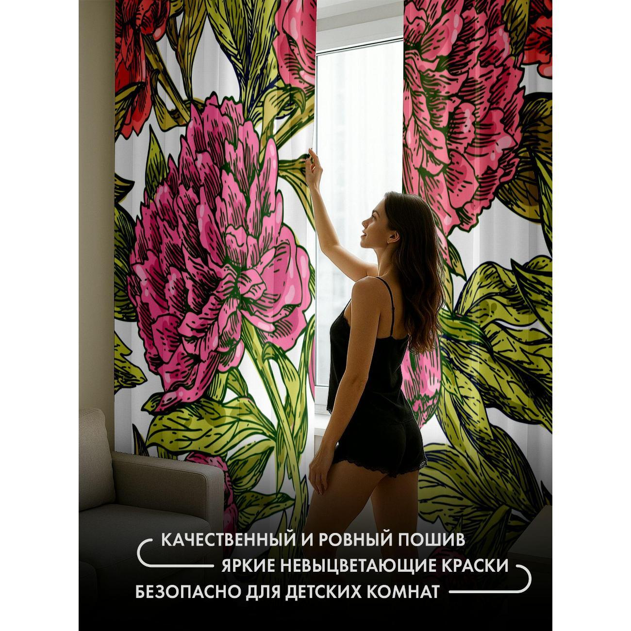 Комплект фотоштор 3D от бренда 365home с дизайном - Розовые пионы с зелёными листьями, графический узор. Оригинальное решение, позволяющее обновить ваш дом, придать ему неповторимый стиль, красоту и подарить его обитателям комфорт и уют, а также стать надёжной защитой от городского шума и холода зимой.