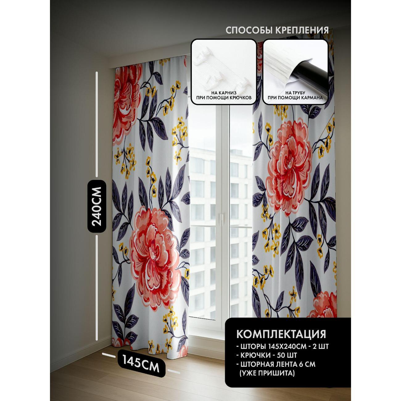 Комплект фотоштор 3D от бренда 365home с дизайном - Розовые пионы, жёлтые цветочки и тёмно-серые листья. Оригинальное решение, позволяющее обновить ваш дом, придать ему неповторимый стиль, красоту и подарить его обитателям комфорт и уют, а также стать надёжной защитой от городского шума и холода зимой.