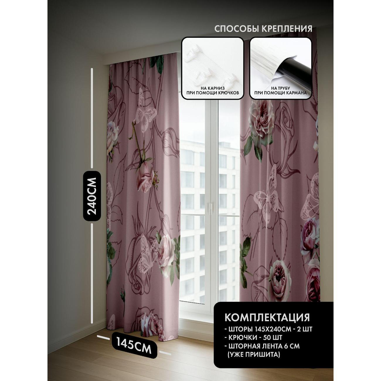 Комплект фотоштор 3D от бренда 365home с дизайном - Розы и бабочки на нежно-розовом фоне, винтажный узор. Оригинальное решение, позволяющее обновить ваш дом, придать ему неповторимый стиль, красоту и подарить его обитателям комфорт и уют, а также стать надёжной защитой от городского шума и холода зимой.