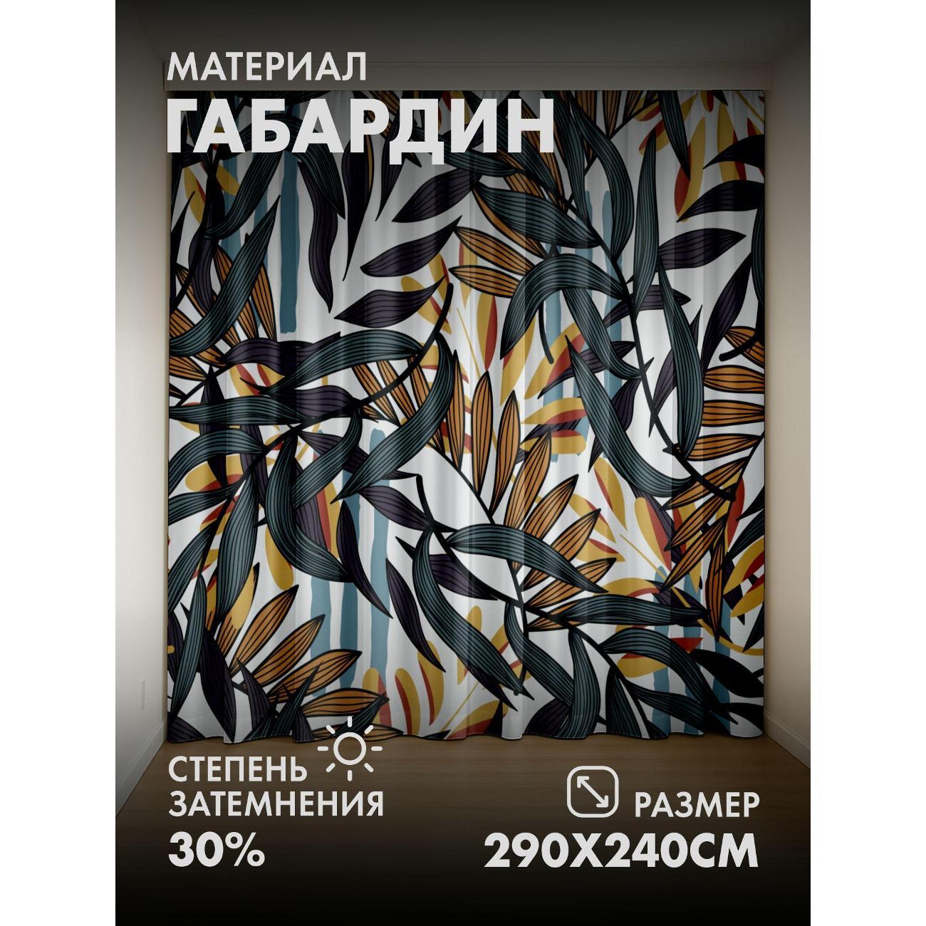 Степень затемнения - 30%. Два способа крепления - на карниз с помощью крючков и на трубу при помощи кармана. Высота 240 см, ширина одного полотна - 145 см. В комплекте 2 полотна. Тон изображения может незначительно отличаться от представленной на сайте фотографии. Тыльная сторона портьеры не имеет изображения.