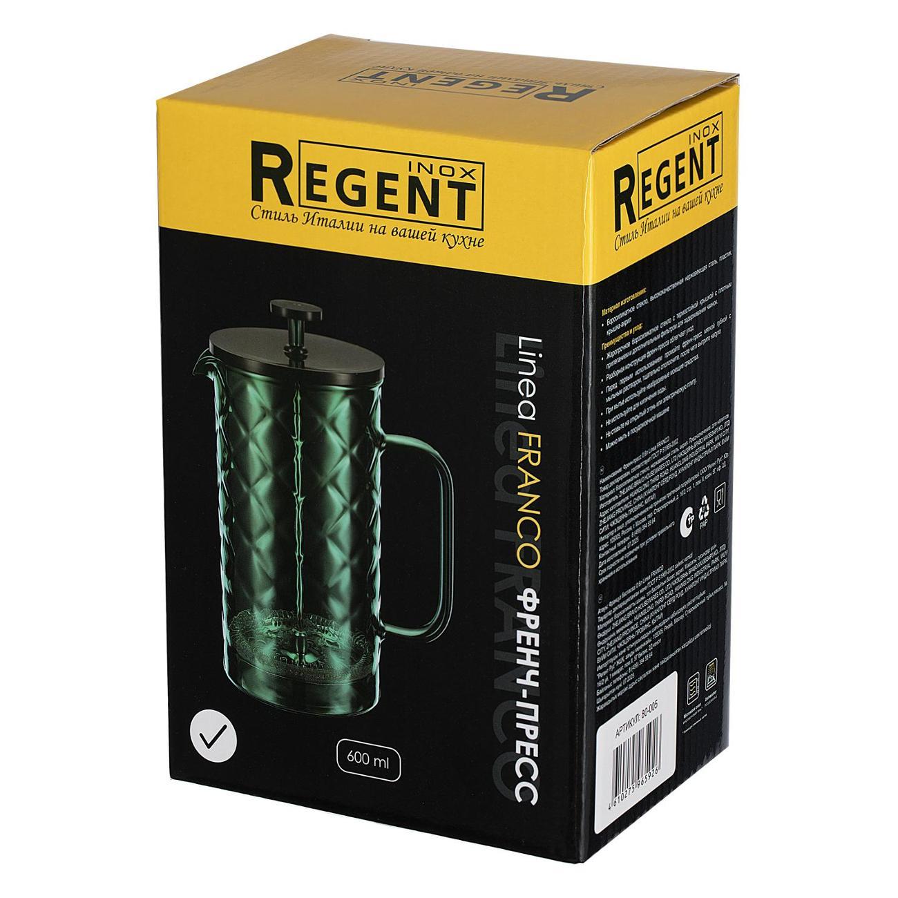 Вы можете купить Френч-пресс 0.6л REGENT inox FRANСO (80-005) в магазинах М.Видео по доступной цене. Френч-пресс 0.6л REGENT inox FRANСO (80-005): подробное описание, фото и отзывы реальных покупателей, характеристики, возможность скачать инструкции и подобрать аксессуары.