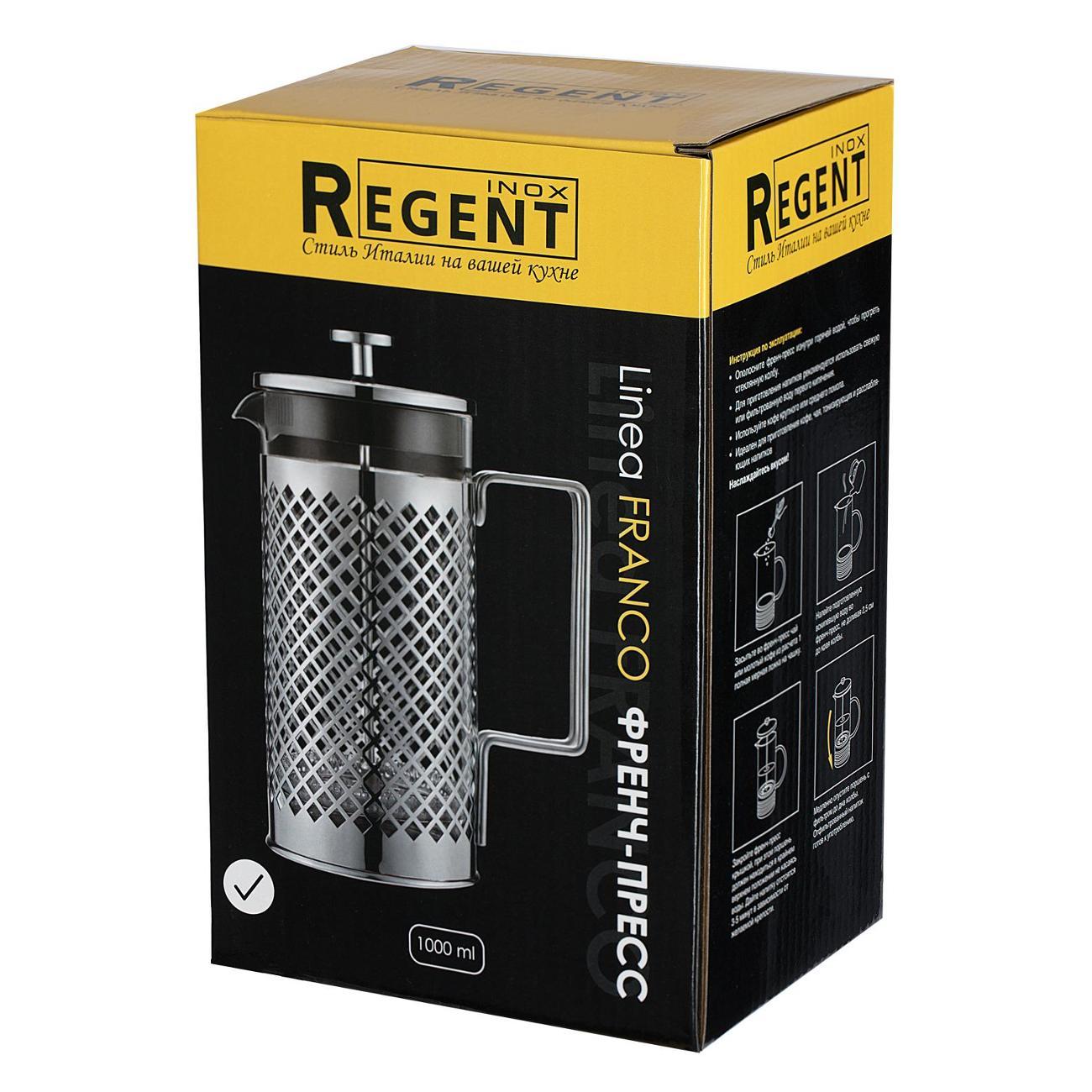 Вы можете купить Френч-пресс 1л REGENT inox FRANСO (80-010) в магазинах М.Видео по доступной цене. Френч-пресс 1л REGENT inox FRANСO (80-010): подробное описание, фото и отзывы реальных покупателей, характеристики, возможность скачать инструкции и подобрать аксессуары.