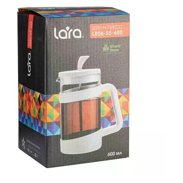 Практичный и стильный дизайн френч-пресса Lara LR06-55 порадует за чаепитием не только вас, но и ваших гостей. Френч-пресс выходит за рамки приготовления только кофе. Используйте его для создания полезных травяных отваров или фруктовых настоев. Каждый напиток получится ярким и полным естественного аромата. Мыть аксессуар после использования очень легко и быстро. Его элегантный дизайн украсит сервировку стола. Пресс для заваривания — это проявление заботы о себе и близких. Корпус изготовлен из инновационного экологически чистого материала: натуральных волокон пшеницы, крахмала и пищевого полипропилена. Безопасен для здоровья и окружающей среды, гипоаллергенен, не портит вкус напитка, без неприятного запаха, выдерживает высокие температуры, полностью биоразлагаемый. Колба выполнена из термостойкого стекла, устойчивого к резкому перепаду температур. Оригинальный внешний вид изделия украсит интерьер современной кухни. Форма носика идеальна для наливания напитков и препятствует образованию подтеков. Пресс-фильтр из нержавеющей стали с уплотнительным кольцом. Благодаря прозрачным стенкам вы сможете определить крепость заваренного напитка. Кроме того, данная модель оснащена ненагревающейся ручкой, что обеспечивает удобство и безопасность использования. Модель представлена в нескольких объемах: 350, 600, 1000 мл. Френч-пресс упакован в подарочную коробку. Объем: 0,35 л. Бренд: LARA. Материал: Жаропрочное боросиликатное стекло. Прочие материалы: Волокно пшеничной соломы "WHEAT STRAW". Мытье: В посудомоечной машине,Ручная мойка. Сливной фильтр: Есть. Тип товара: Френч-пресс.