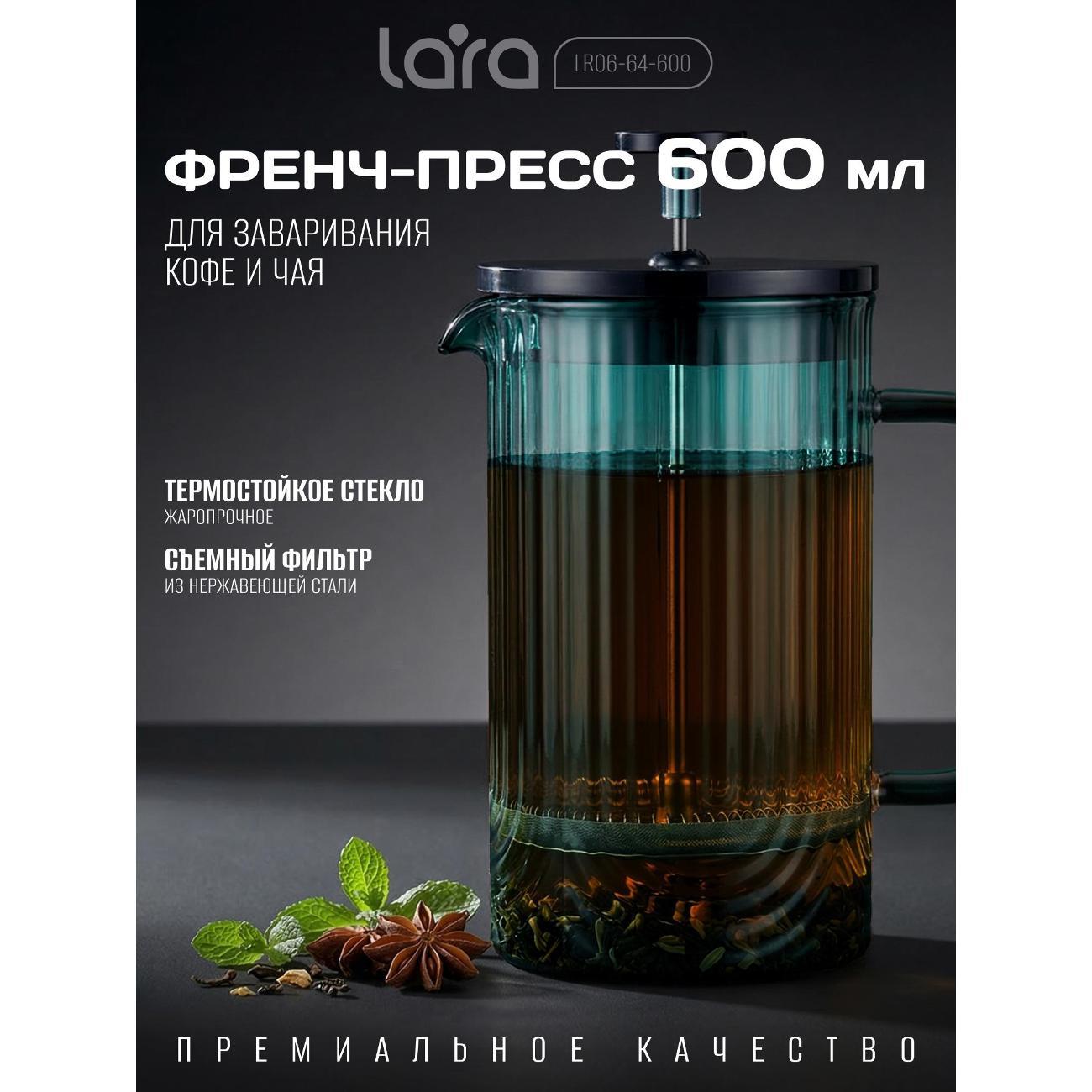 Вы можете купить Френч-пресс Lara LR06-64-600, 600 мл в магазинах М.Видео по доступной цене. Френч-пресс Lara LR06-64-600, 600 мл: подробное описание, фото и отзывы реальных покупателей, характеристики, возможность скачать инструкции и подобрать аксессуары.