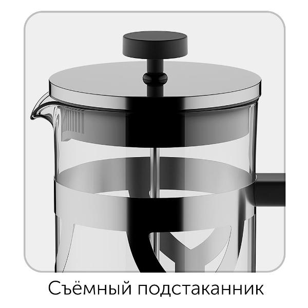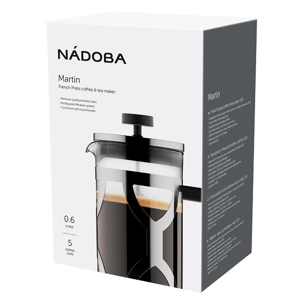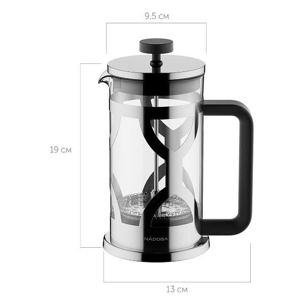 Френч-пресс Nadoba Martin 733412 состоит из жаропрочной стеклянной колбы объемом 0,6 л и стального подстаканника, устойчивого к образованию коррозии. Вся конструкция модели легко разбирается, что облегчает процесс очистки. Модель можно мыть в посудомоечной машине. Внутри размещен металлический фильтр для отделения напитка от заварки. Ручка выполнена из приятного на ощупь материала, который не нагревается в процессе использования френч-пресса и не скользит в руках. Размер составляет 20x14x10 см.