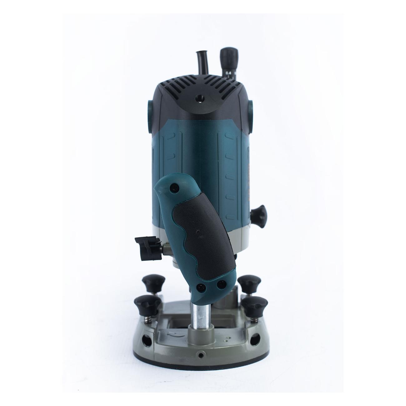 Предусмотрена возможность подвода пылесоса для удаления стружки и система регулирования скорости вращения оснастки от 8000 об/мин до 23500 об/мин. Поддерживается установка фрезы радиусом до 20 мм, вертикальный ход составляет 6 см (регулируется ограничителем хода). Для предотвращения срыва фрезы используется система плавного пуска двигателя.