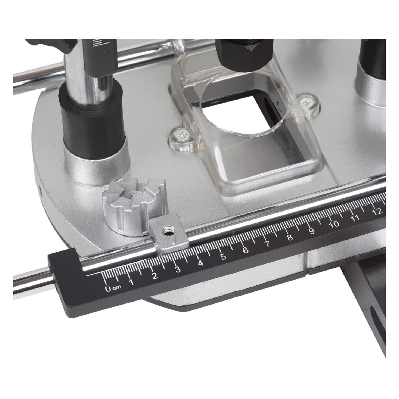 Устройство с рабочим ходом фрезы 60 мм отличается скоростью от 8000 об./мин до 23000 об./мин. Максимальный диаметр диска равен 12 см. Прибор с патроном 12 мм безопасен в использовании благодаря защитному щитку и блокируемому шпинделю. В комплектацию входят цанга размером 8 мм и ключ. Инструмент с габаритами 29х31х17 см весит 6 кг. Корпус изготовлен из прочного и износостойкого пластика, что гарантирует долгий срок службы.