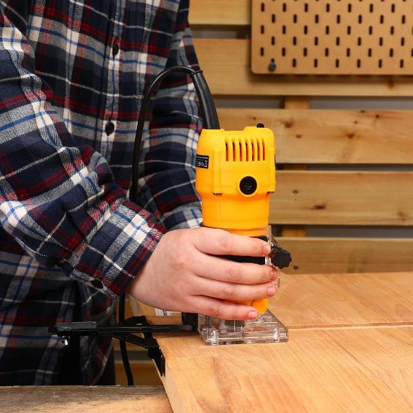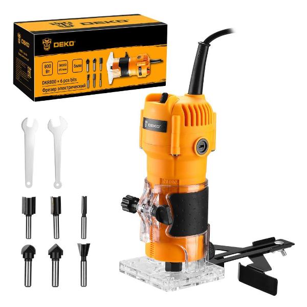 Фрезер Deko DKR800 выполнен в габаритных размерах 12,5х13х32,5 см. Вес модели составляет 1,7 кг. Двигатель с потребляемой мощностью 800 Вт обеспечивает частоту вращения 30000 об/мин. Диаметр хвостовика фрезы и цанги равен 6 мм, рабочий ход фрезы — 38 мм. Благодаря микролифту возможна регулировка глубины реза. В комплекте представлено два ключа и параллельный упор. Для безопасности пластиковый корпус оборудован защитным щитком. Встроенный сетевой кабель длиной 2 м. Цвета модели: желтый/ черный.