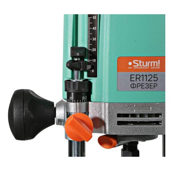 Фрезер Sturm! ER1125 получил ударопрочный корпус из пластика, защитный щиток, патрон на 8 мм и кабель длиной 4 м для подключения к сети. Устройство потребляет 1250 Вт мощности, чего достаточно для частоты вращения в пределах 16000-30000 об/мин. Предусмотрен микролифт, регулировка глубины реза и блокировка шпинделя. Прибор укомплектован ключом, параллельным упором и парой цанг. Вес составляет 3,9 кг при габаритах 12х21х34,5 см.