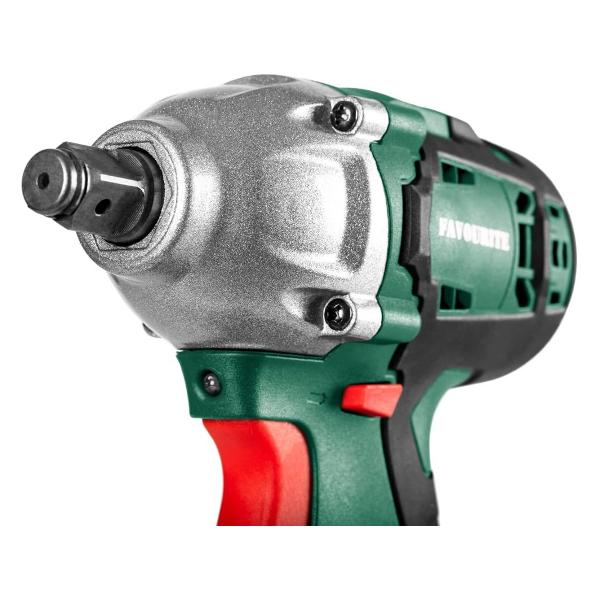 Гайковерт Favourite OBS 21 TW предназначен для откручивания и закручивания гаек и болтов. Класс инструмента — бытовой. Две скорости работы. Максимальная первая скорость редуктора — 1850 об/мин. Максимальное число оборотов холостого хода — 2300 об/мин. Максимальный крутящий момент — 350 Нм. Максимальный уровень шума — 94,6 дБ. Имеет прорезиненную ручку для комфорта во время работы, регулировку оборотов и реверс. Корпус инструмента изготовлен из пластика и металла. Работает от съемного аккумулятора типа Li-Ion напряжением 21 В. Аккумулятор и зарядное устройство в комплект не входят. Габаритные размеры — 25x10x45 см. Вес — 0,7 кг. Страна-производитель — Китай. Гарантия один год.