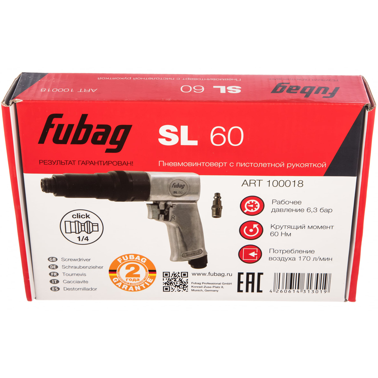 Вы можете купить Гайковерт пневматический Fubag SL60 (100018) в магазинах М.Видео по доступной цене. Гайковерт пневматический Fubag SL60 (100018): подробное описание, фото и отзывы реальных покупателей, характеристики, возможность скачать инструкции и подобрать аксессуары.