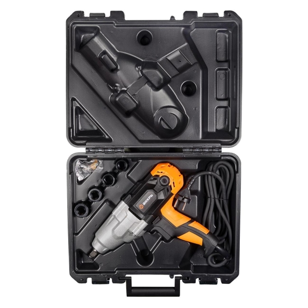 Питание производится от сети 220 В. В комплект входят набор ключей и специальный кейс для удобного хранения инструмента и перемещения с одного места в другое.