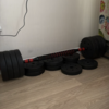 Гантели отличного качества, очень прочные и надежные. Вес 40 кг дает серьезную нагрузку на руки, плечи и спину, идеально подходит для домашних силовых тренировок.