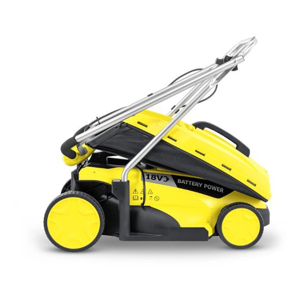 Аккумуляторная газонокосилка Karcher LMO 18-33 относится к инструментам бытового класса. Модель оснащена прямым приводом и пластиковыми колесами, упрощающими перемещение по территории дачного участка, парка. В травосборник помещается до 35 л. Минимальная высота скашивания составляет 3,6 см, максимальная 6,5 см. В качестве режущего элемента выступает нож.